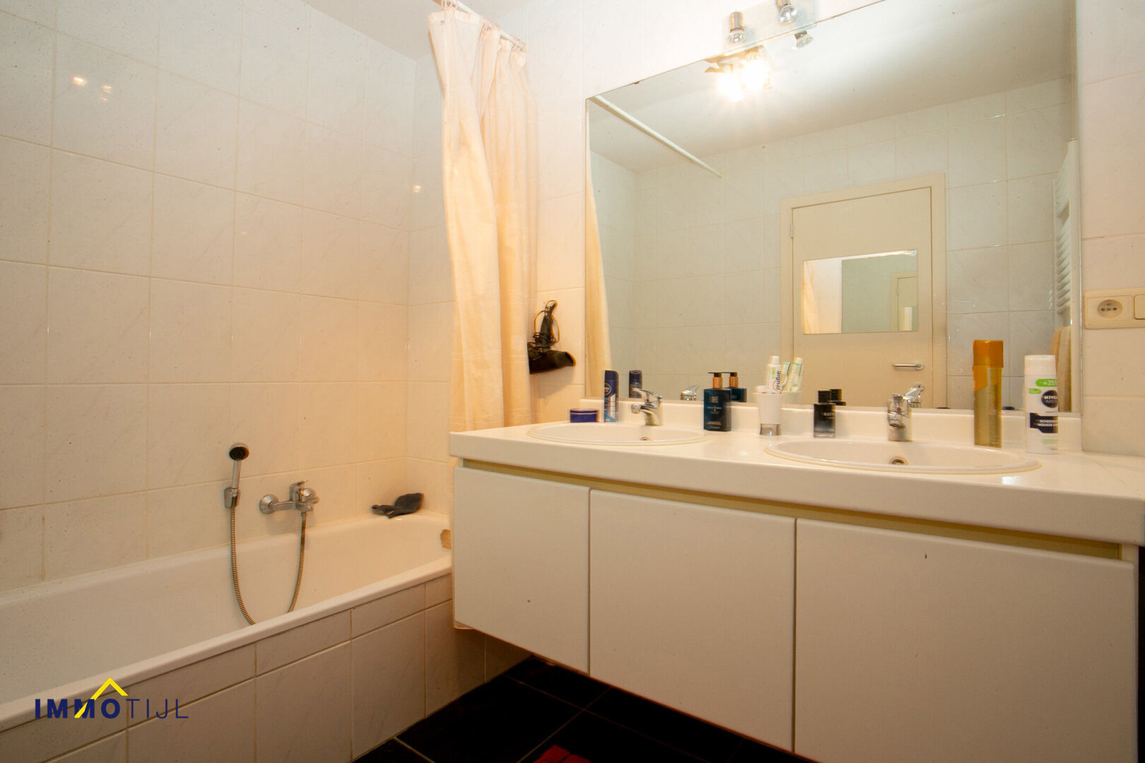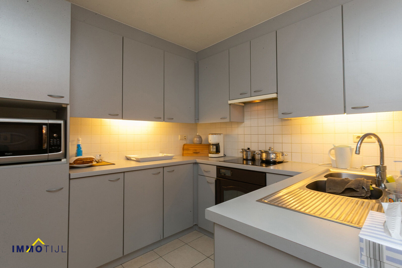 Het appartement heeft een praktische en aangename indeling. U komt binnen via een inkomhal met apart gastentoilet. De ruime leefruimte baadt in het natuurlijke licht en sluit naadloos aan op de open, volledig ingerichte keuken. Aansluitend bevindt zich een handige berging. Verder zijn er twee ruime slaapkamers en een verzorgde badkamer met ligbad en een dubbel lavabomeubel.
