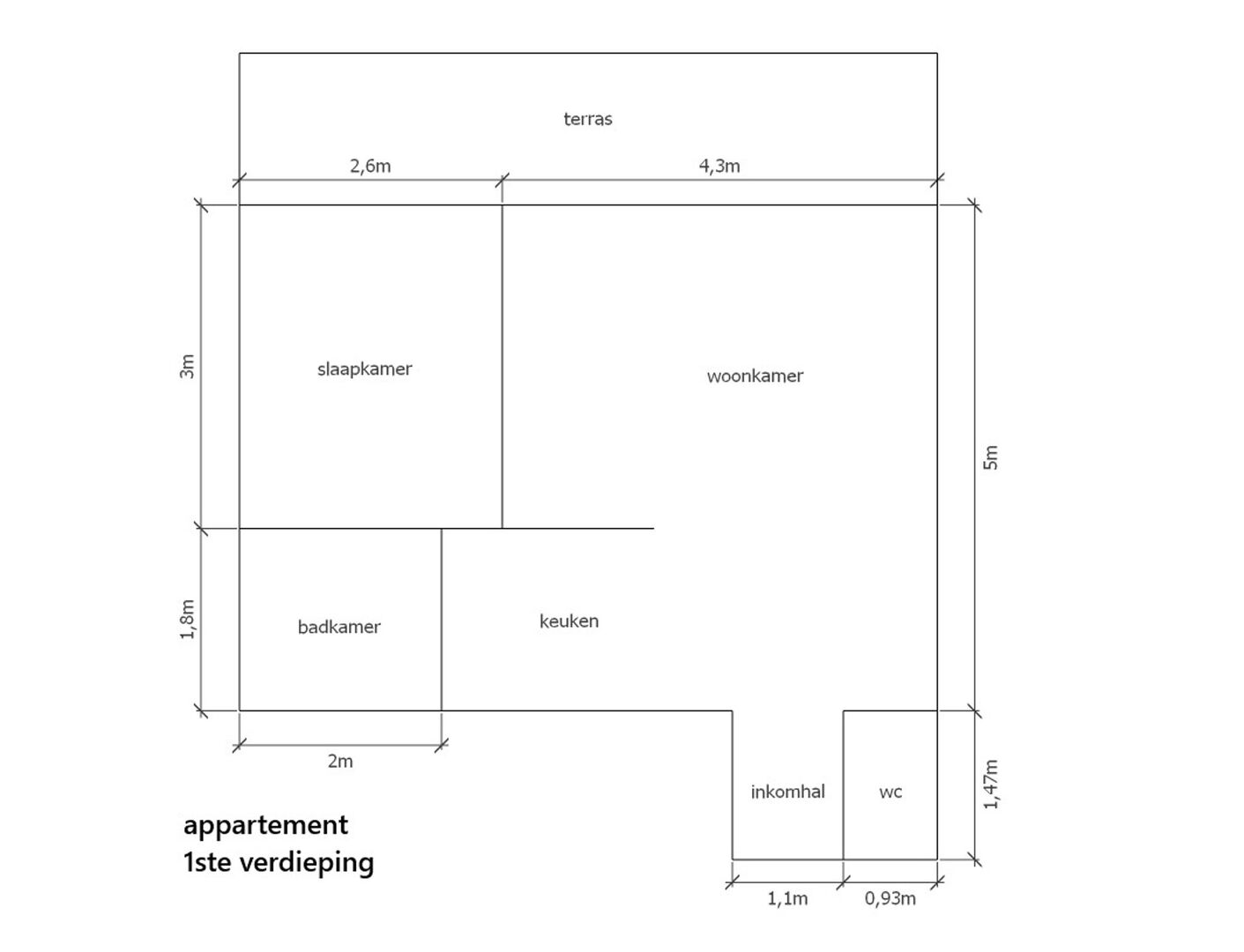 - 43,00 m²