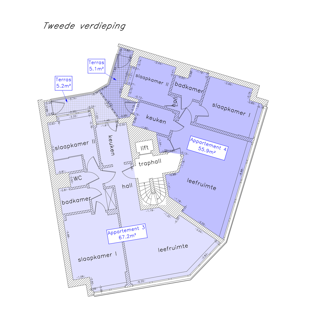 Het appartement bevindt zich op de 2de verdieping (lift aanwezig) en beschikt over een inkom, een apart toilet, een badkamer, 2 slaapkamers, een ruime living en een keuken. Via de keuken bereikt men het gezellig terras.