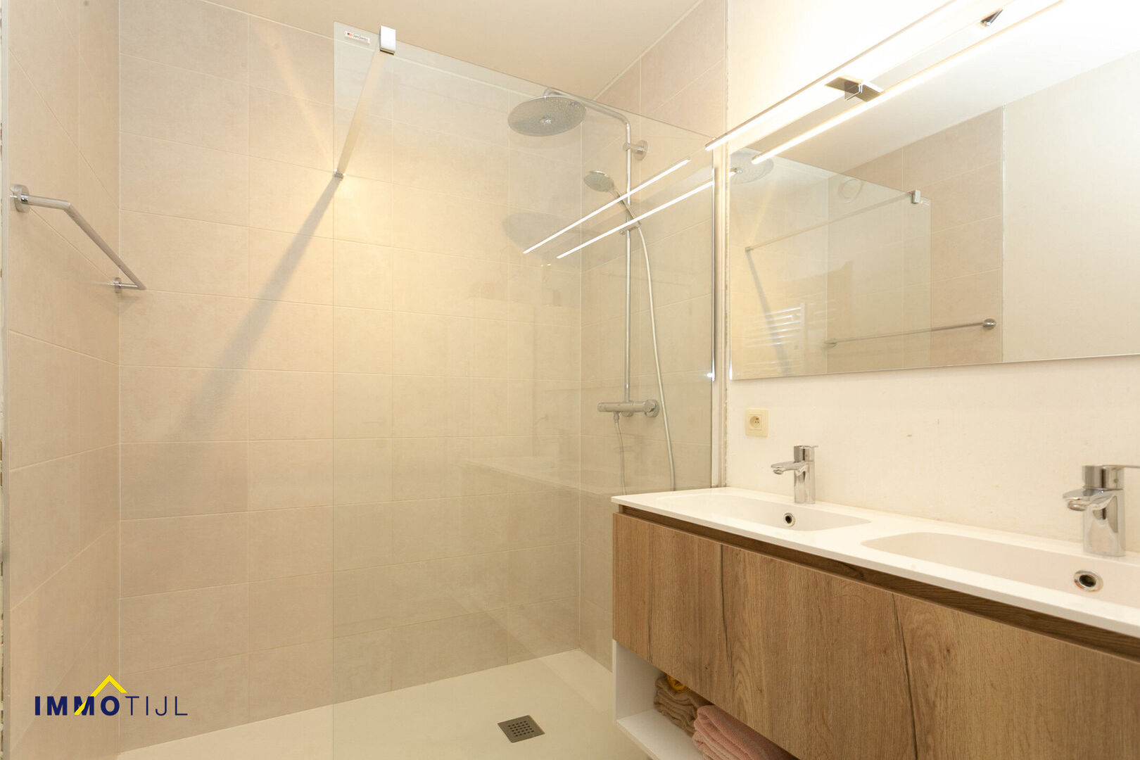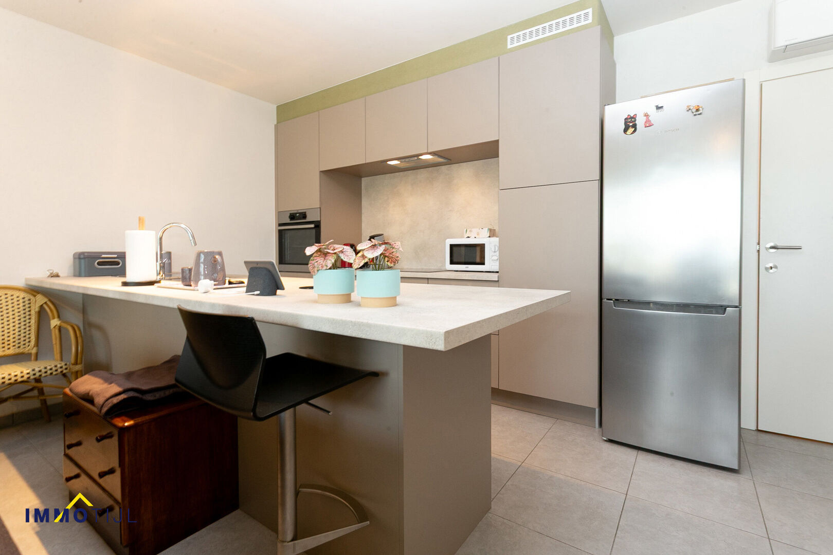 Het appartement is tot in de puntjes afgewerkt (open keuken met vaatwas en inductiekookplaat, overal tegelvloer dus ook in de slaapkamer, mooi afgewerkte binnendeuren, videofonie, enzovoort.
