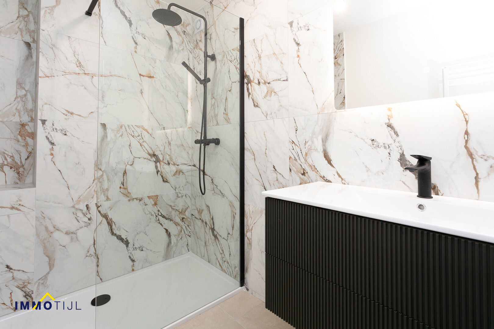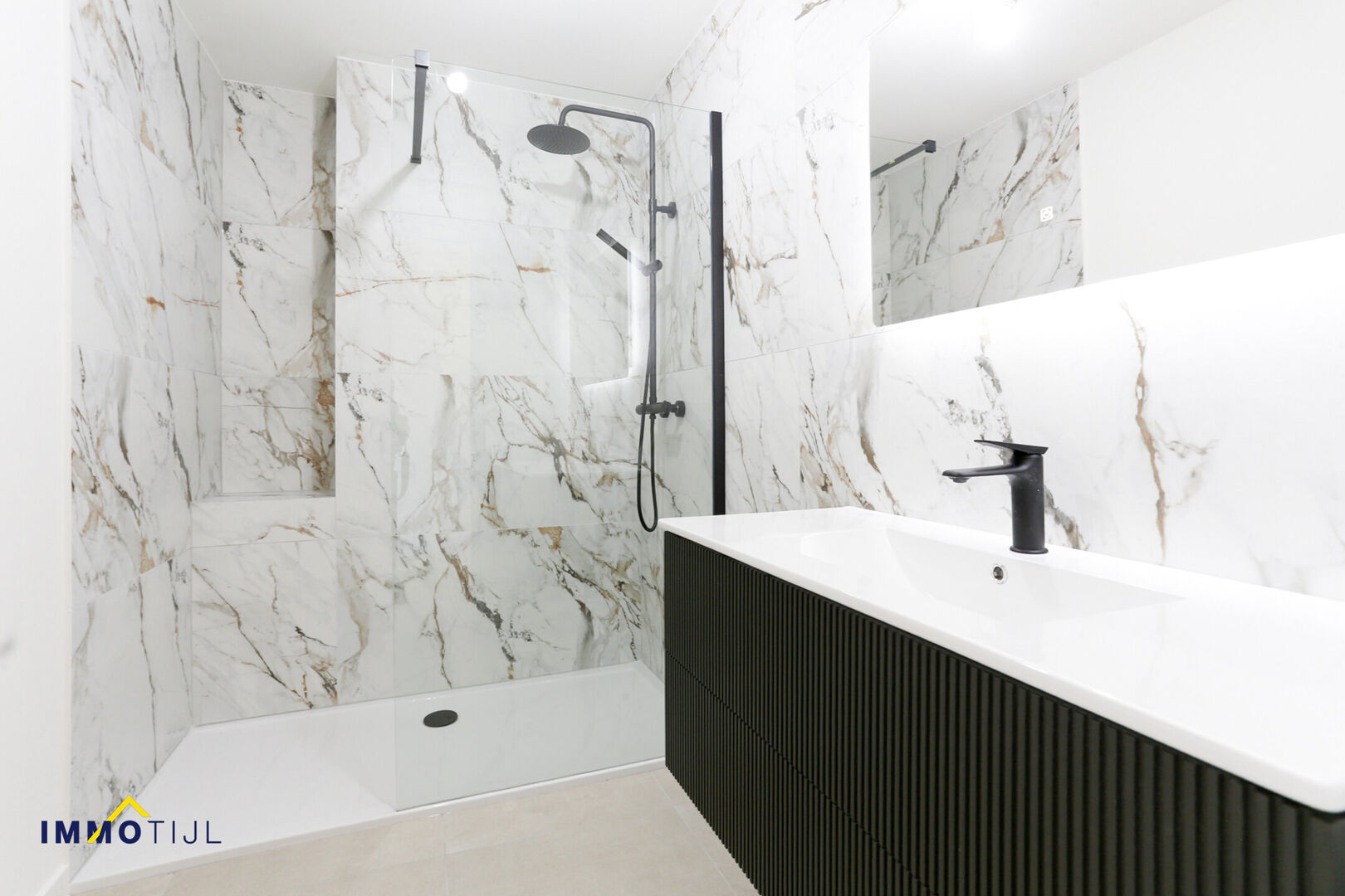 Inkomhal, een grote en lichtrijke leefruimte, nieuwe volledig uitgeruste keuken, praktische berging, luxueuze badkamer met regendouche, afzonderlijk gastentoilet en 2 volwaardige slaapkamers en een ruime bergzolder.