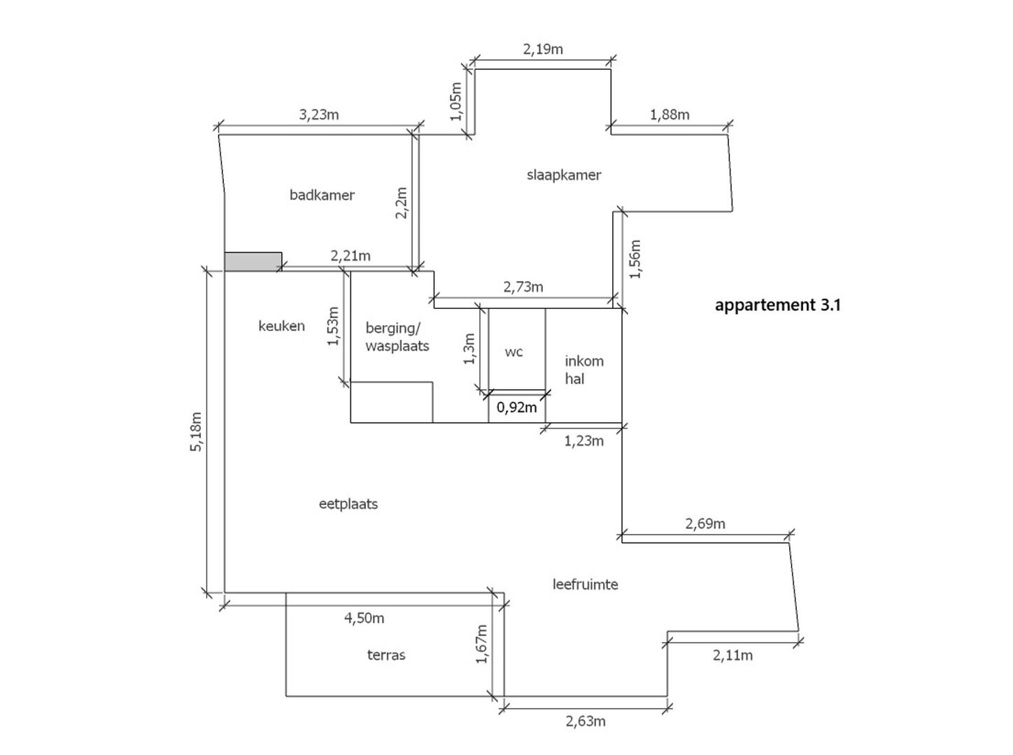 Dit instapklaar appartement bevindt zich op de derde verdieping van een recent, kleinschalig gebouw (2017) met lift en beschikt over een inkomhal, een gezellige woonkamer met volledig ingerichte open keuken, één ruime slaapkamer met ingemaakte kasten, een badkamer (douche-in-bad, lavabo, een berging/wasplaats met aansluitingen voor een wasmachine en een apart toilet. De woonkamer geeft uit op het gezellig, zuid georiënteerd terras!