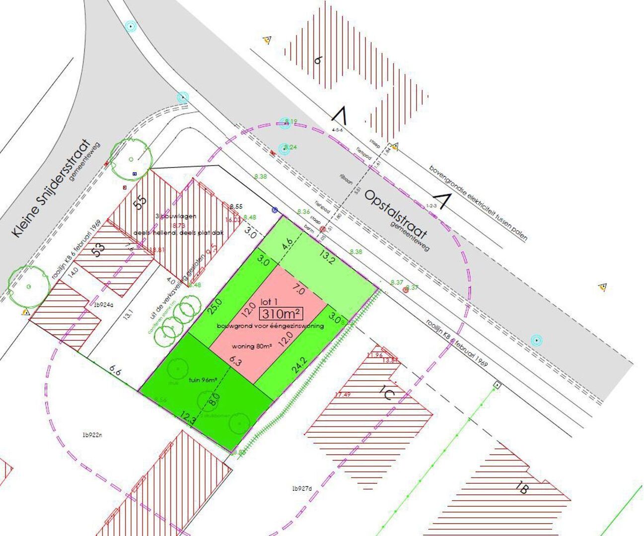 Dit perceel, gelegen in een goedgekeurde verkaveling, heeft een totale oppervlakte van zo'n 310 m² (zie plan) en is geschikt voor het creëren van een vrijstaande woning. De straatbreedte bedraagt ongeveer 13 meter. De maximale bouwdiepte bedraagt 12 meter op het gelijkvloers en de verdieping, rekening houdend met zijdelingse bouwvrije strook van 3 meter.