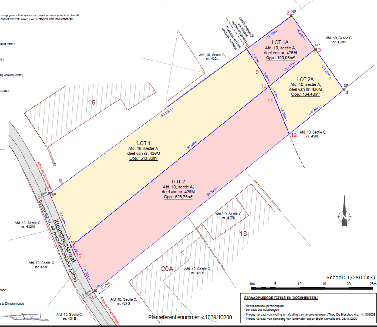 Dit perceel, gelegen in een goedgekeurde verkaveling, heeft een totale oppervlakte van zo'n 663 m² (zie plan lot 2 en lot 2A) en is geschikt voor het creëren van een halfopen woning. De straatbreedte bedraagt ongeveer 10,4 meter. De maximale bouwdiepte bedraagt 15 meter op het gelijkvloers en 12 meter op de verdieping, rekening houdend met zijdelingse bouwvrije strook van 3 meter.
