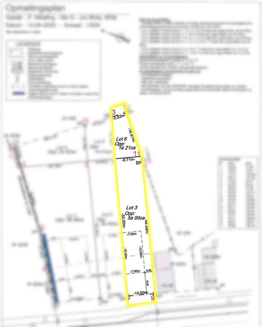 Betreft lot 3 + lot 6 op het opmetingsplan in bijlage (samen 621 vierkante meter).