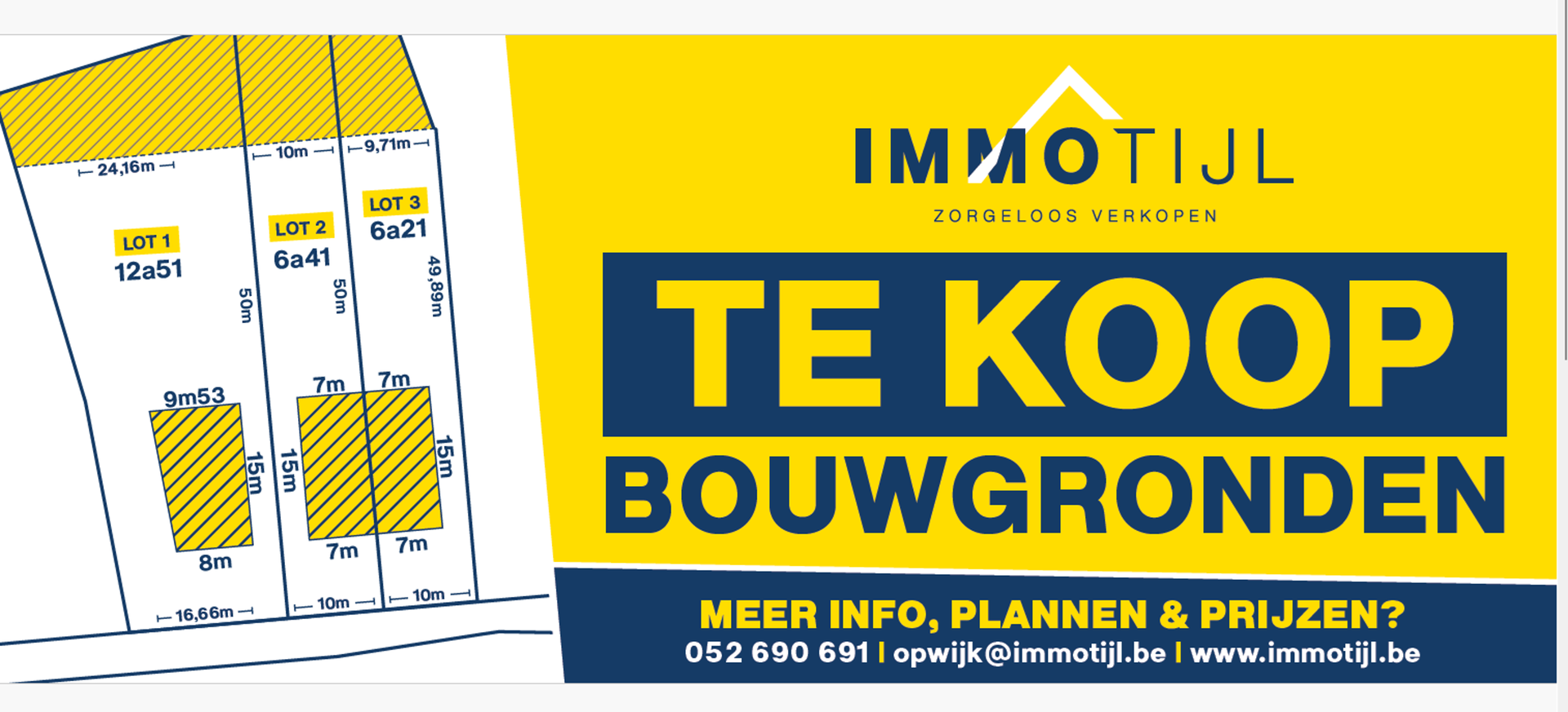 Fantastische projectgrond, klaar voor de realisatie van 1 open bebouwing en 2 halfopen bebouwing. Verkaveling is reeds gerealiseerd; volledige opmetingsplannen en voorschriften beschikbaar op kantoor.
