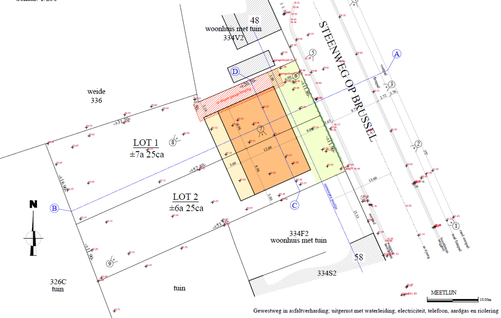Dit perceel heeft een totale oppervlakte van zo'n 625 m² en is geschikt voor het creëren van een halfopen bebouwing (zie plan lot 2). De straatbreedte bedraagt ongeveer 11,9 meter. De bouwdiepte bedraagt 15 meter op het gelijkvloers en 12 meter op de verdieping, ideaal voor het creëren van een ruime ééngezinswoning. Ideale zuidwest oriëntatie!