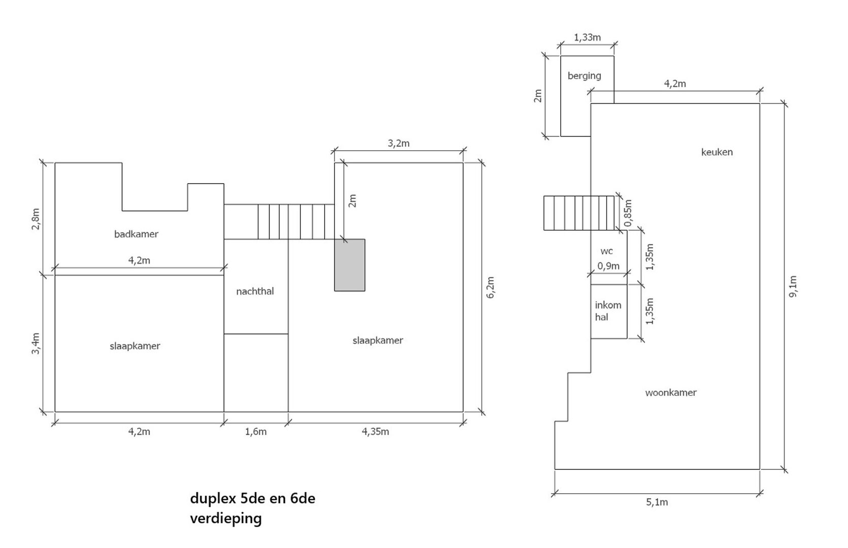 Dit recent appartement bevindt zich op de vijfde en zesde verdieping van een verzorgd gebouw met lift. Het omvat een inkomhal, een lichtrijke woonkamer met open en ingerichte keuken. Aansluitend aan de keuken bevindt zich een praktische berging met aansluitingen voor een wasmachine, evenals een apart toilet.