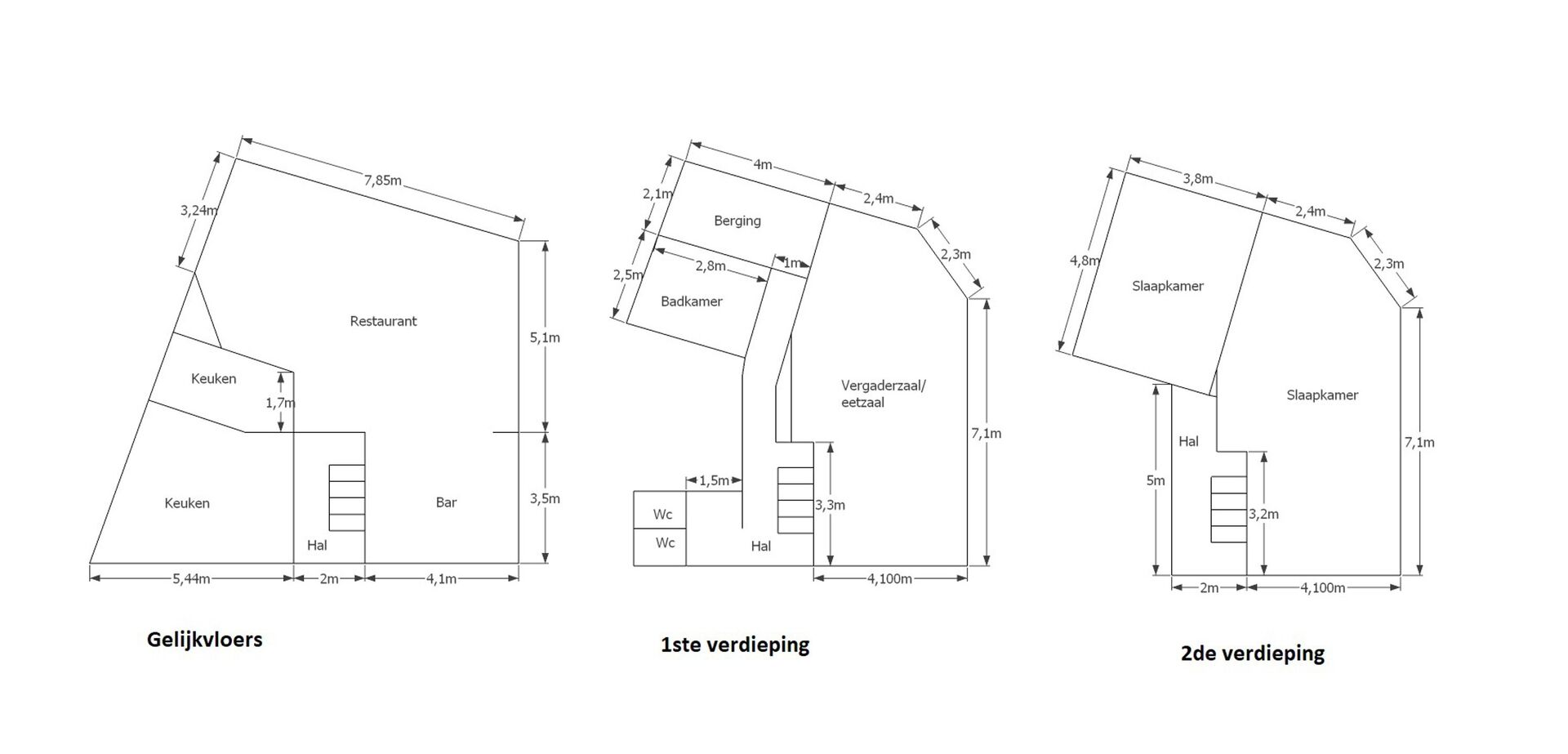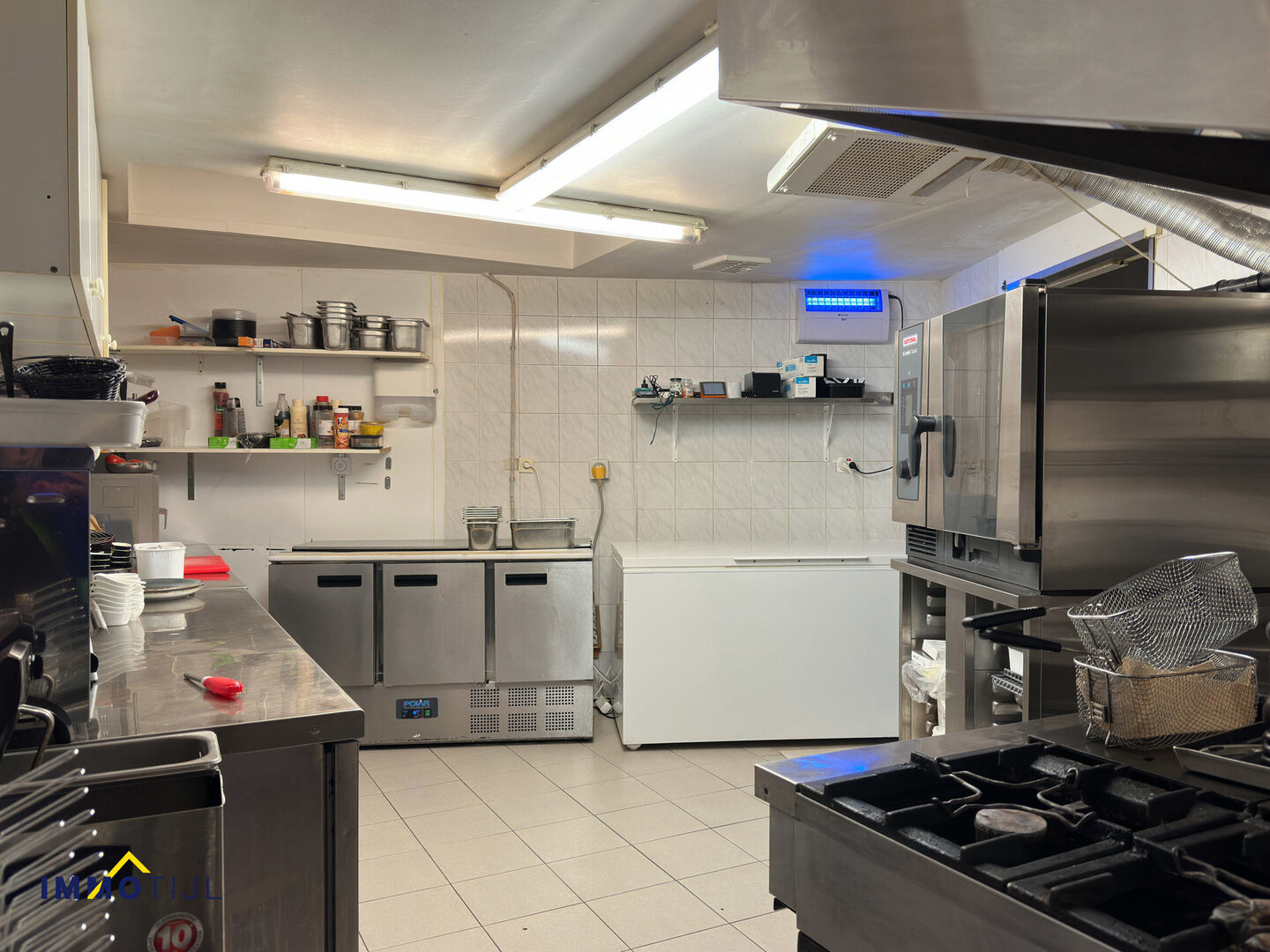 Op het gelijkvloers bevindt zich een moderne, uitnodigende ruimte met bar en ingerichte keuken, perfect voor een restaurant, café of andere commerciële invulling. De eerste verdieping beschikt over een extra zaal, ideaal als eetruimte, vergaderzaal of coworking space. Verder zijn er aparte toiletten (man/vrouw), een berging en een badkamer met douche-in-bad, lavabomeubel en toilet.