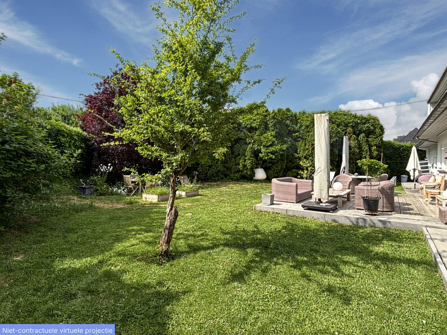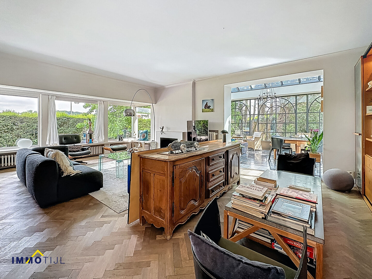 Via de woonkamer heeft u toegang tot het brede terras dat uitkijkt op de aangelegde tuin met westelijke oriëntatie. De absolute blikvanger van deze villa is de indrukwekkende orangerie (veranda) aan de zuidzijde van het perceel, waar u het hele jaar door in alle comfort van het buitenleven kunt genieten.