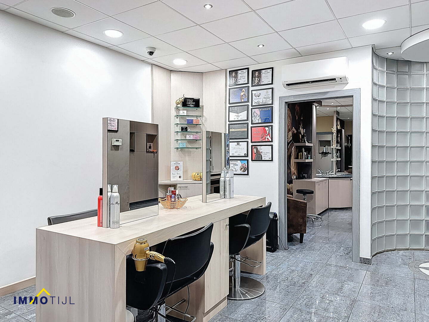 Op het gelijkvloers bevindt zich de handelsruimte, momenteel ingericht als kapsalon, schoonheidsinstituut en wellnessgedeelte. De ruimte beschikt over een verzorgd onthaal, meerdere toiletten en een volledig uitgeruste wellnesszone met sauna, douche en massageruimte. Het is ook ideaal voor investeerders, aangezien de huidige bewoonster met haar goed draaiende zaak graag wil blijven. De EPC-score van de handelsruimte bedraagt label C met een oppervlakte van c.a 159m².