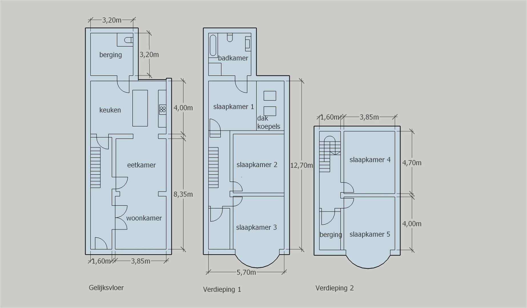 Deze ruime rijwoning is uniek in zijn soort, met zijn bewoonbare oppervlakte van 212m² en tuin van 85m². Op het gelijkvloers bevindt zich: een inkomhal, open leefruimte, open keuken met zicht op de tuin en een berging met apart toilet. Op de eerste verdieping bevinden zich 3 slaapkamers, een berging (kan fungeren als dressing) en een mooie badkamer met toilet, ligbad en wastafel. Op de tweede verdieping bevinden zich nog eens 2 slaapkamers en aparte bergruimte.