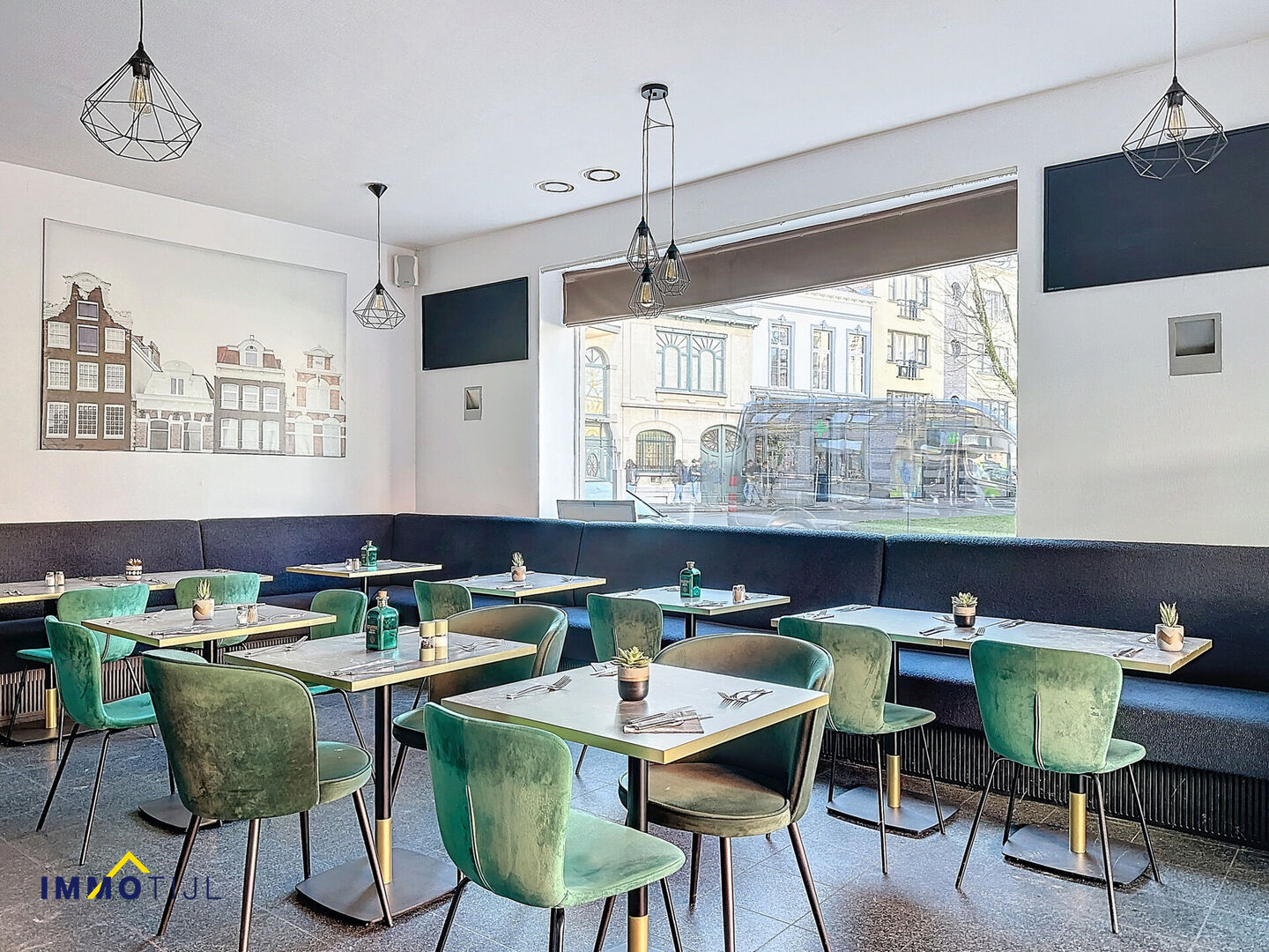 Op het gelijkvloers bevindt zich een moderne, uitnodigende ruimte met bar en ingerichte keuken, perfect voor een restaurant, café of andere commerciële invulling. De eerste verdieping beschikt over een extra zaal, ideaal als eetruimte, vergaderzaal of coworking space. Verder zijn er aparte toiletten (man/vrouw), een berging en een badkamer met douche-in-bad, lavabomeubel en toilet.