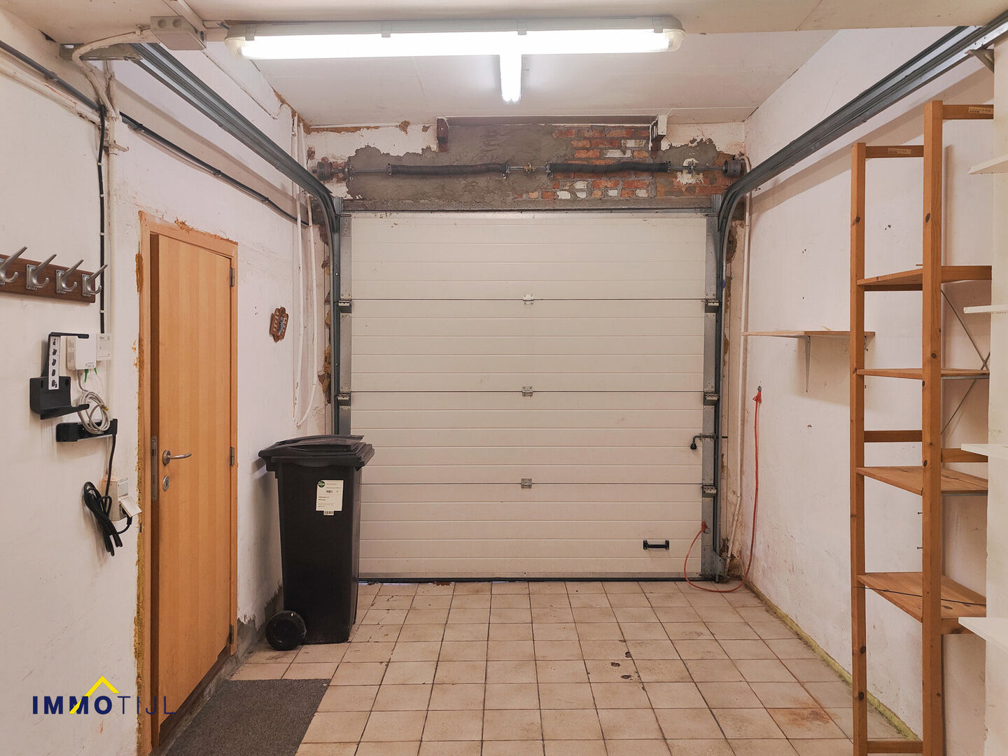 Op het gelijkvloers bevindt zich de inkomhal, een inpandige garage met automatische poort, ruime leefruimte met aansluitend de open ingerichte keuken en de badkamer.