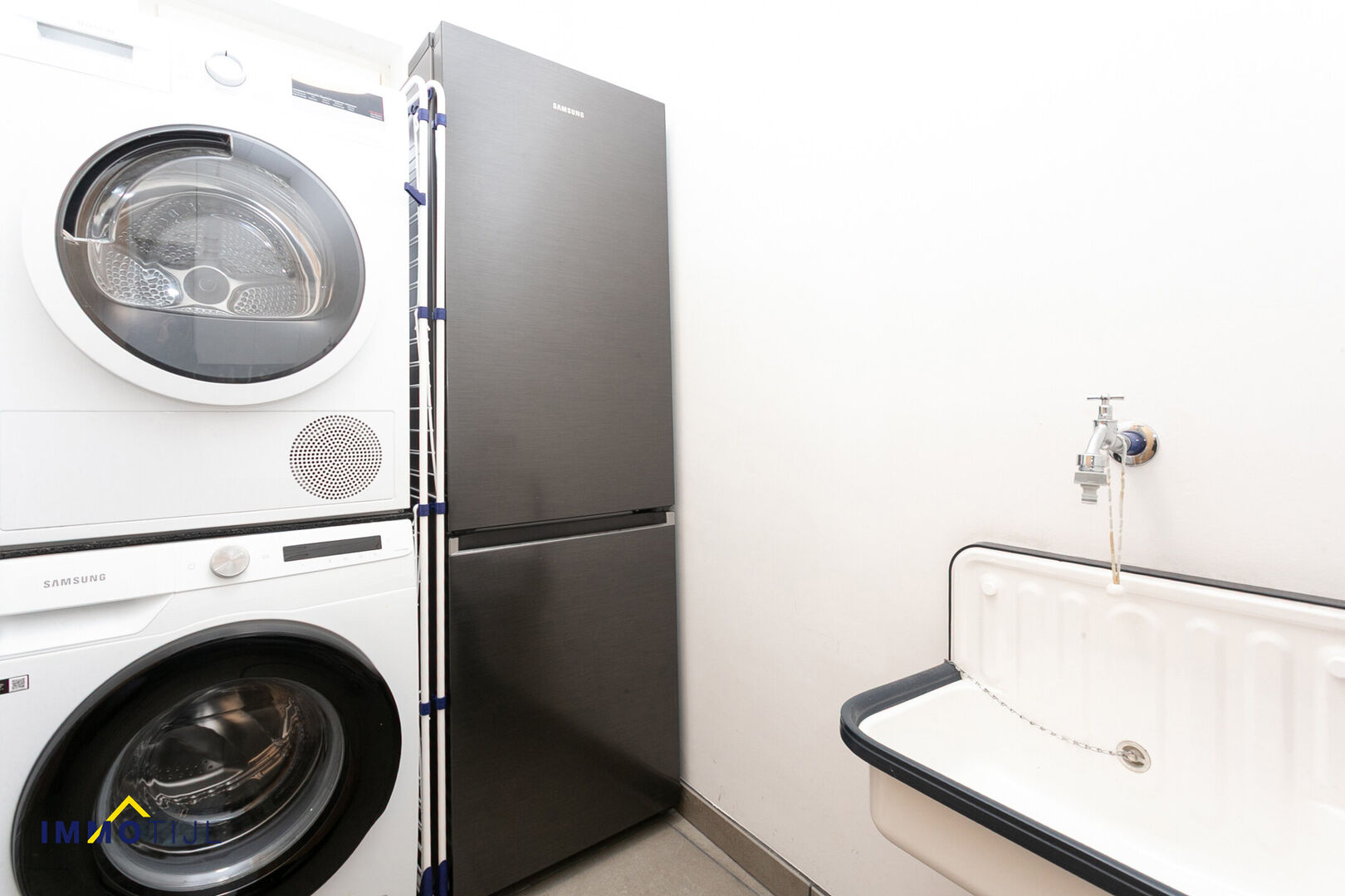 De woning omvat op het gelijkvloers een inkomhal, lichtrijke leefruimte mét open keuken (oven niet inbegrepen) die uitgeeft op de mooie, zonnige tuin. Ook vindt u nog een bergruimte/wasplaats en gastentoilet op het gelijkvloers.
