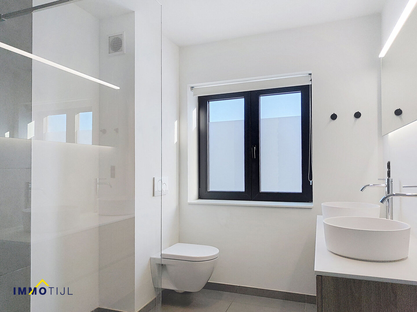 Op de bovenverdieping bevinden zich twee volwaardige slaapkamers, een bergruimte en de moderne badkamer met inloopdouche, toilet en dubbele wastafel met meubel.