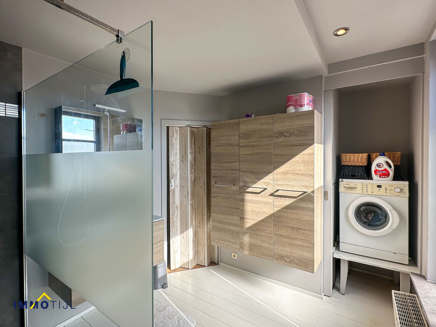 Binnenin geniet je van een lichtrijke woonkamer. Op de eerste verdieping bevinden zich twee slaapkamers en een stijlvolle badkamer met inloopdouche, lavabomeubel, ingebouwde wasruimte en een apart toilet. De tweede verdieping, bereikbaar via een vaste trap, biedt een derde slaapkamer of kan perfect dienen als speelkamer of hobbyruimte. Volledig gerenoveerd in 2021!