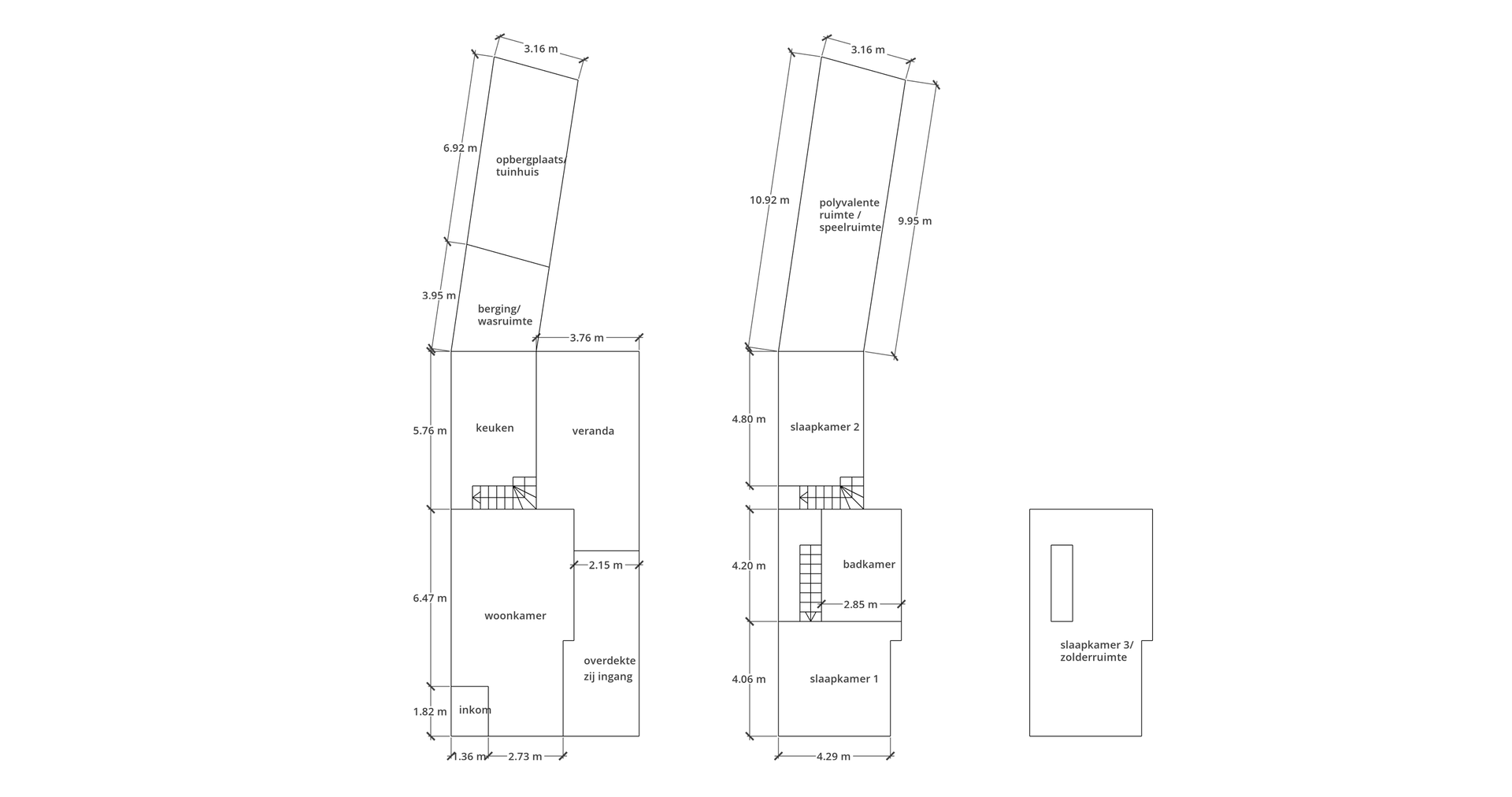 Op de eerste verdieping bevinden zich twee slaapkamers en een badkamer met inloopdouche, dubbel lavabomeubel en toilet. De tweede verdieping, bereikbaar via een vaste trap, herbergt de derde slaapkamer/zolderruimte.