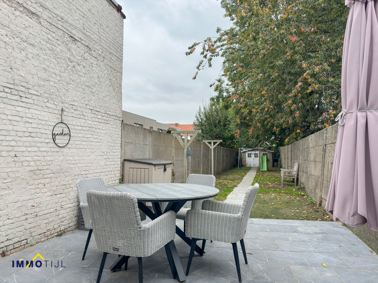 Achteraan bevindt zich de diepe tuin met charmant terras.
