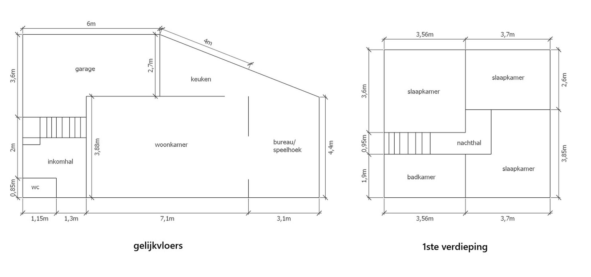 Op de eerste verdieping bevinden zich drie slaapkamers en een badkamer uitgerust met douche, bad, lavabo en toilet. De zolderverdieping, bereikbaar via een valluik, creëert bijkomende mogelijkheden voor uitbreiding of extra bergruimte. Een praktische kelder voorziet bovendien in extra opslag.