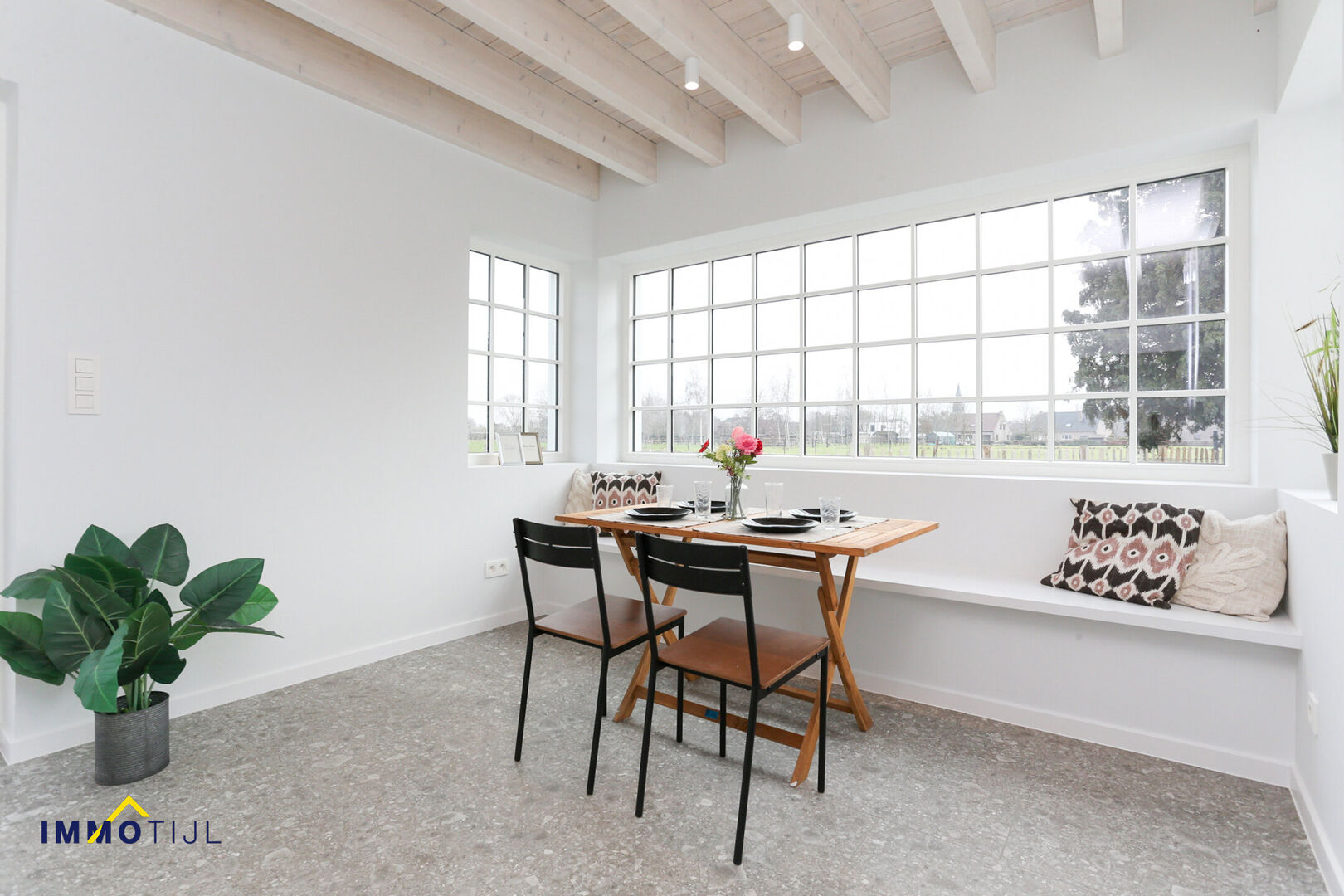 In de zonnige tuin is het bijzonder gezellig vertoeven – omgeven door groen en blik op oneindig. Binnenin ligt de lat inzake afwerking zeer hoog: authentieke balken, zeer duurzame kwaliteitsmaterialen, volledig geschilderd en voorzien van maatkasten. Alvast even binnenkijken? Dat kan via onze virtuele rondleiding: my.matterport.com