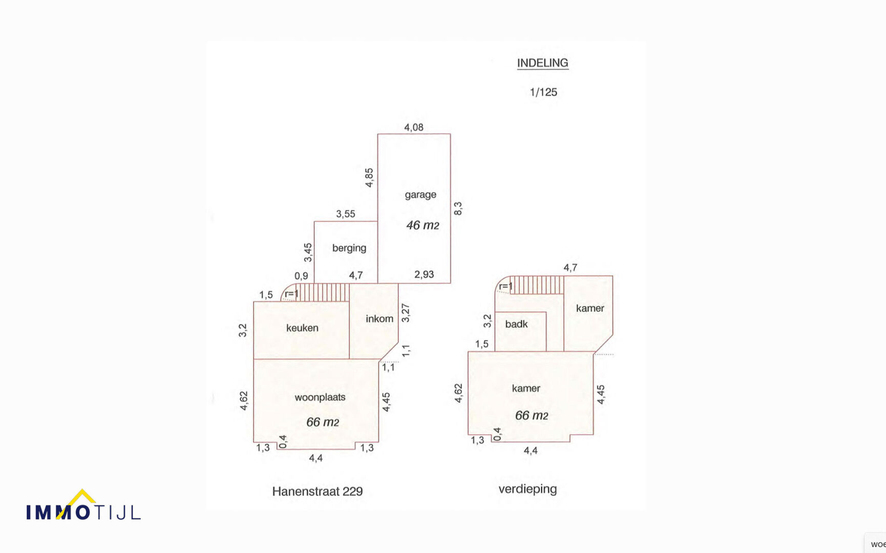Indeling gelijkvloers: inkomhal, vrij recente en functionele keuken, grote leefruimte. Achteraan is er een grote bergruimte en een garage. Verdieping: badkamerruimte en 2 slaapkamers – drie kamers zijn makkelijk te creëren. Er is tevens een grote zolder aanwezig.