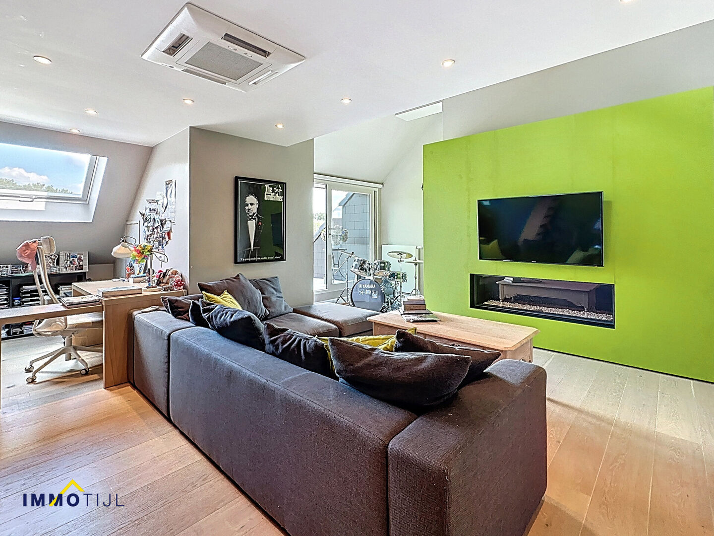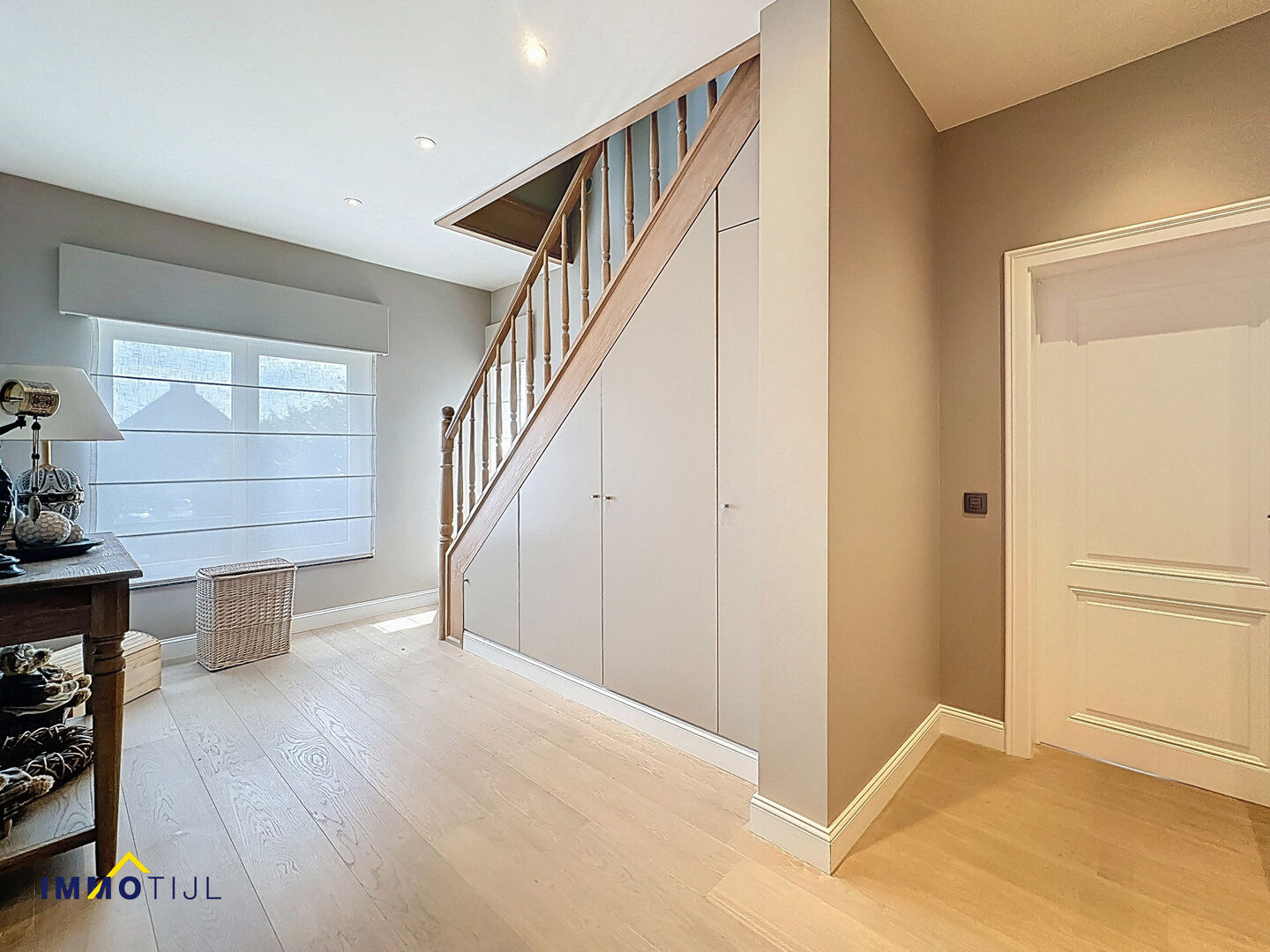 Deze unieke woning beschikt op het gelijkvloers over een imposante inkomhal met gastentoilet, een ruime woonkamer voorzien van sfeerhaard met aansluitend de lichtrijke eetplaats en volledig ingerichte open keuken. Hier geniet je van duurzame, hoogwaardige toestellen (AEG, Bosch), waaronder een inductiekookplaat, vaatwas en ingebouwde oven. Er is tevens een bureau/hobbykamer aanwezig, ideaal voor thuiswerk of voor het uitoefenen van een vrij of zelfstandig beroep.