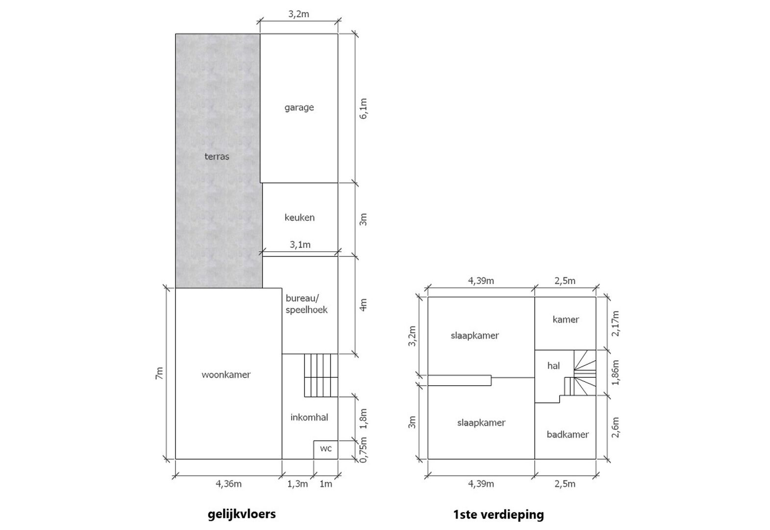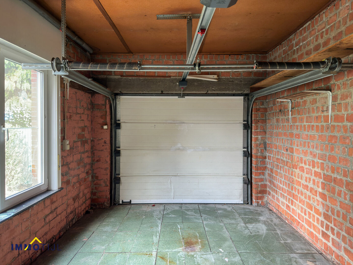 Deze op te frissen woning beschikt op het gelijkvloers over een inkomhal met gastentoilet, een lichtrijke woonkamer met eetruimte, een bureau of speelhoek en een keuken. Vanuit de keuken is er toegang tot het aangelegd terras en tot de ruime inpandige garage met automatische poort. De garage is bereikbaar via de achterzijde, en bovendien is er extra parkeergelegenheid vóór de garage.