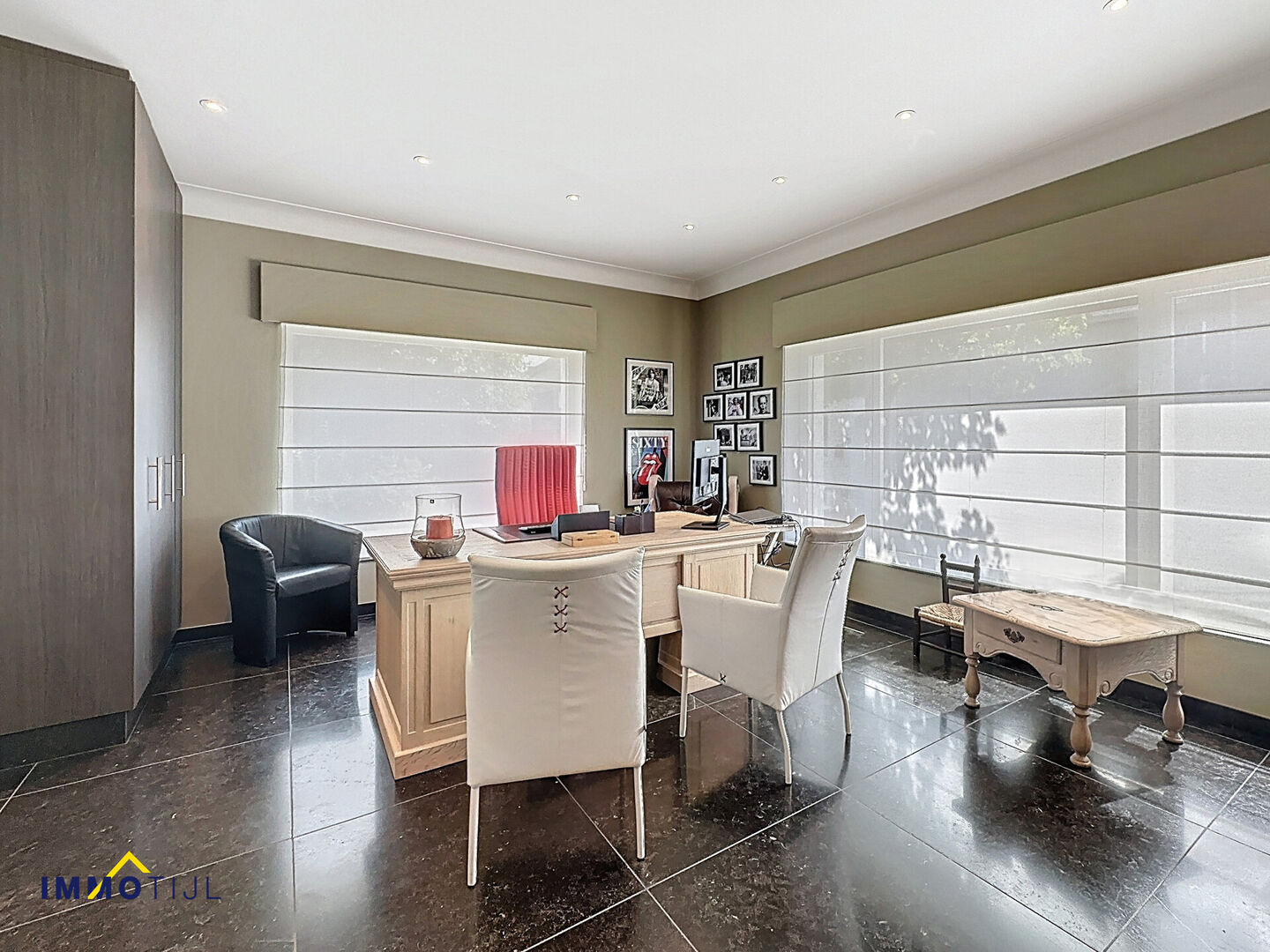 Deze unieke woning beschikt op het gelijkvloers over een imposante inkomhal met gastentoilet, een ruime woonkamer voorzien van sfeerhaard met aansluitend de lichtrijke eetplaats en volledig ingerichte open keuken. Hier geniet je van duurzame, hoogwaardige toestellen (AEG, Bosch), waaronder een inductiekookplaat, vaatwas en ingebouwde oven. Er is tevens een bureau/hobbykamer aanwezig, ideaal voor thuiswerk of voor het uitoefenen van een vrij of zelfstandig beroep.