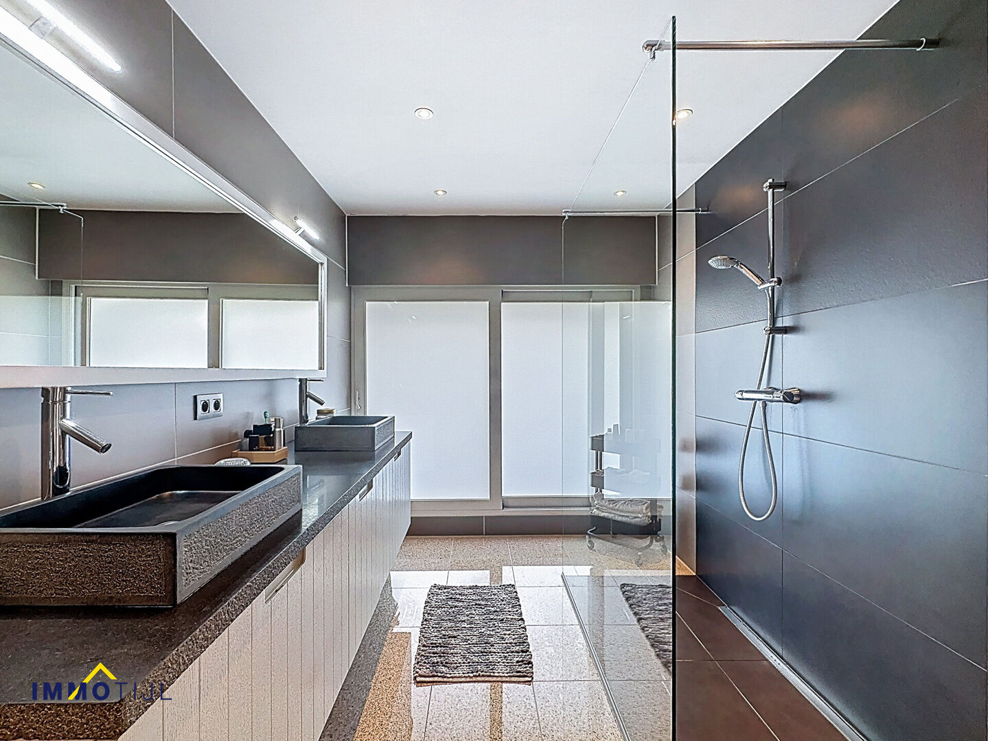 Technische pluspunten zijn er in overvloed: domotica, automatische rolluiken, buitenverlichting met timer, ingebouwd surroundsysteem, vloerverwarming in de leefruimte met afwerking in blauwe steen, centrale verwarming op aardgas en maar liefst 46 zonnepanelen, inclusief groenestroomcertificaten. Tot slot is er een droge, praktische kelder.