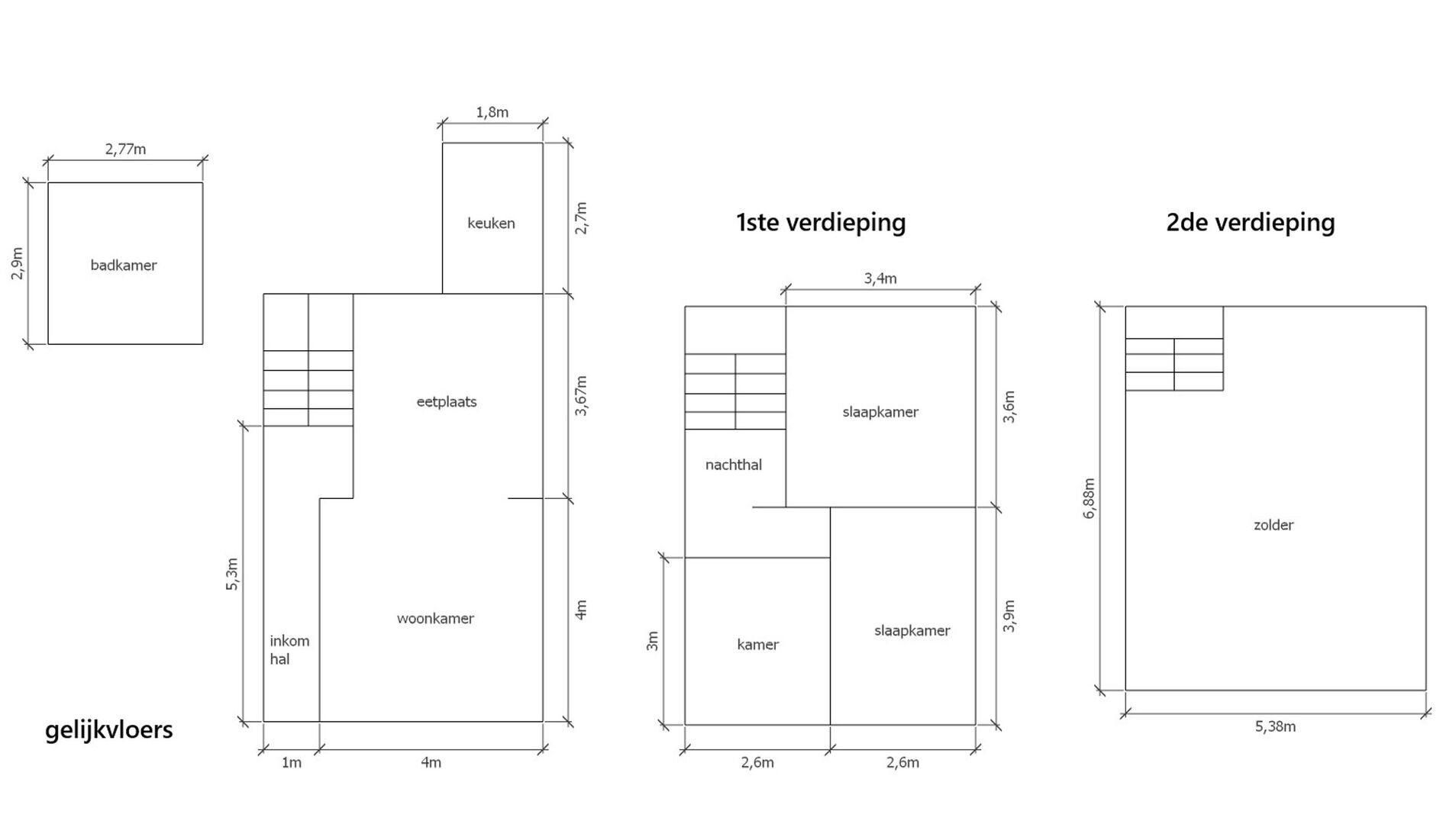 Op de eerste verdieping zijn er drie slaapkamers. De zolderverdieping, bereikbaar via een vaste trap, biedt bovendien interessante uitbreidingsmogelijkheden voor het creëren van een extra kamers.