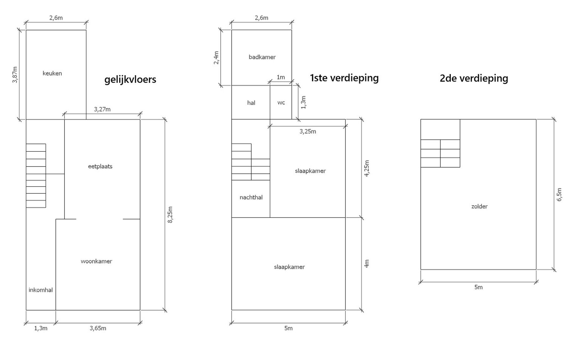 Op de eerste verdieping bevinden zich twee ruime slaapkamers, apart toilet en een badkamer (voorzien van douche en lavabo). De tweede verdieping omvat een grote zolderruimte, momenteel ingericht als atelier, en biedt tal van interessante uitbreidingsmogelijkheden.