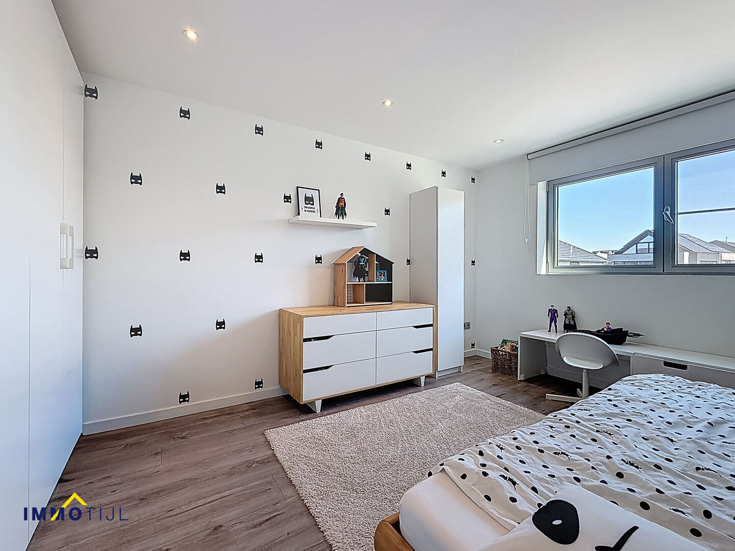 Deze recente open bebouwing verwelkomt u op het gelijkvloers met een stijlvolle inkomhal, voorzien van een gastentoilet en vestiaire. Daarnaast bevindt zich een praktische bureauruimte. De leefruimte baadt in natuurlijk daglicht dankzij de grote raampartijen en sluit naadloos aan op de open keuken met eetplaats. Aansluitend vindt u nog een praktische wasplaats.
