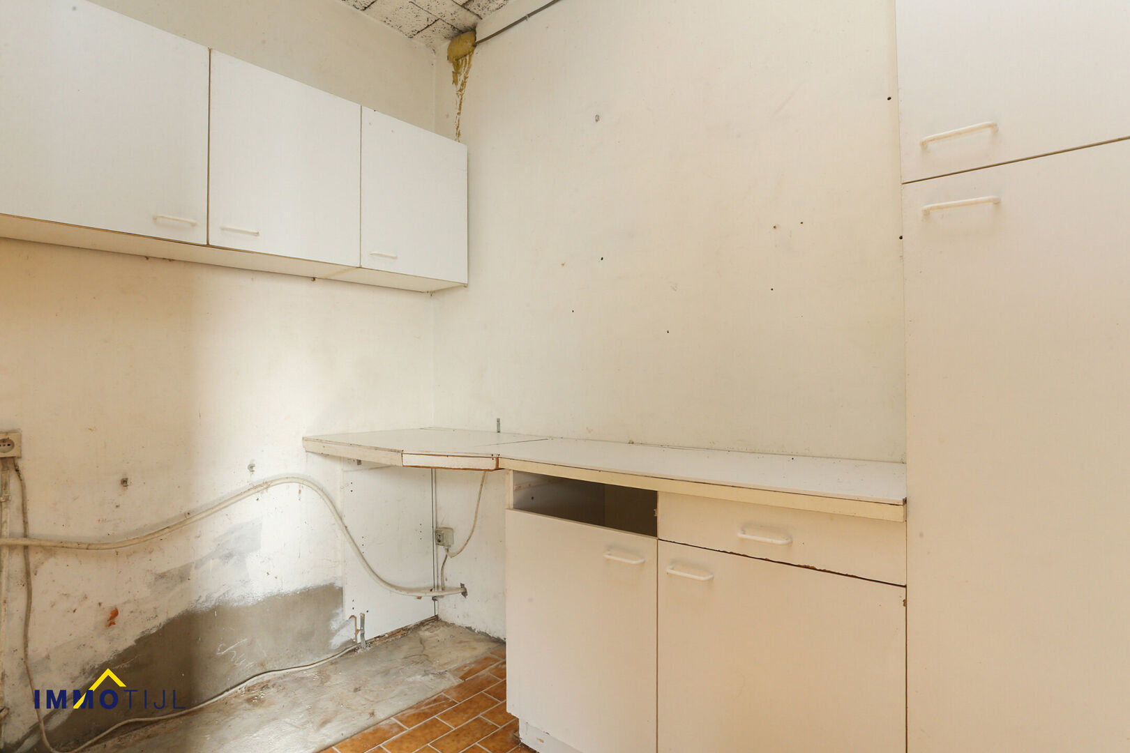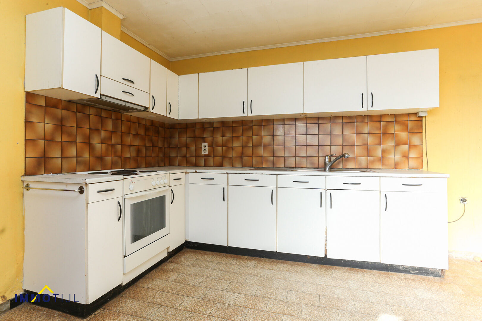 Deze zeer solide op te knappen woning beschikt op het gelijkvloers over een ruime inkomhal, lichtrijke woonkamer, keuken en berging. Op de verdieping bevinden zich 3 ruime slaapkamers en de badkamer.