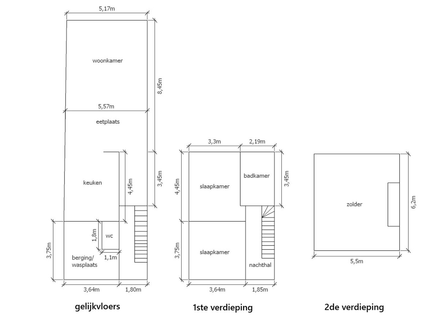 Op de eerste verdieping bevinden zich twee comfortabele slaapkamers en een badkamer met ligbad, douche, lavabomeubel en toilet. De tweede verdieping biedt een ruime zolder die eenvoudig kan worden opgesplitst in twee extra kamers.