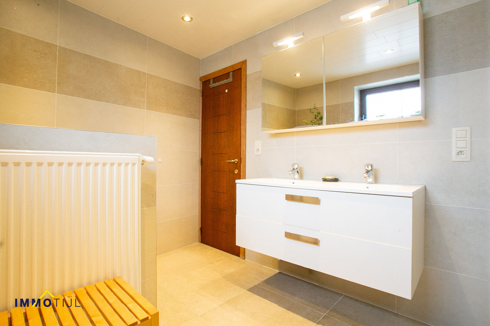 Achteraan is er een zonnig terras met ruime fietsenberging. Deze instapklare woning heeft een zij-uitgang voor fietsen en beschikt vooraan over een staanplaats voor een wagen. Meer info en bezoeken: tom@immotijl.be of 052690691