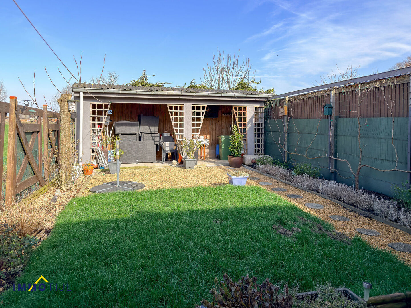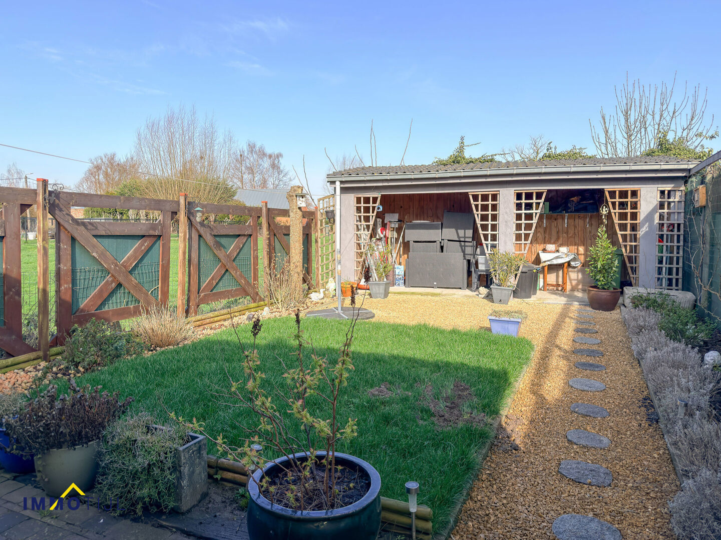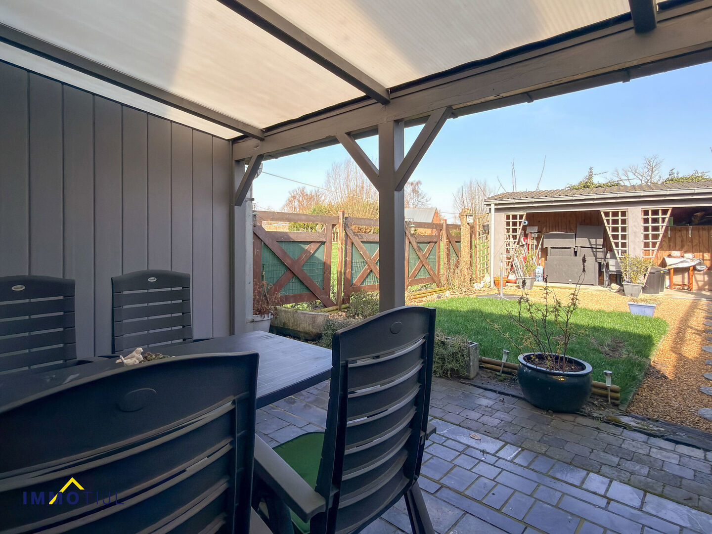 Achteraan bevindt zich de charmante tuin met (overdekt) terras, een aangename plek om in alle rust te ontspannen.
