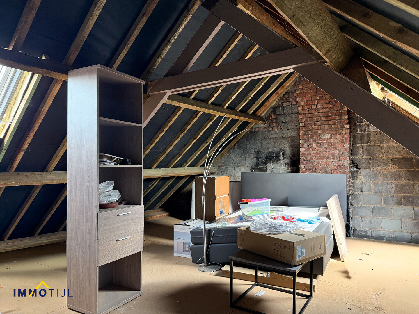De tweede verdieping, bereikbaar via een vaste trap, biedt een zolderruimte met potentieel voor het creëren van een derde slaapkamer. Deze ruimte dient nog verder afgewerkt te worden.