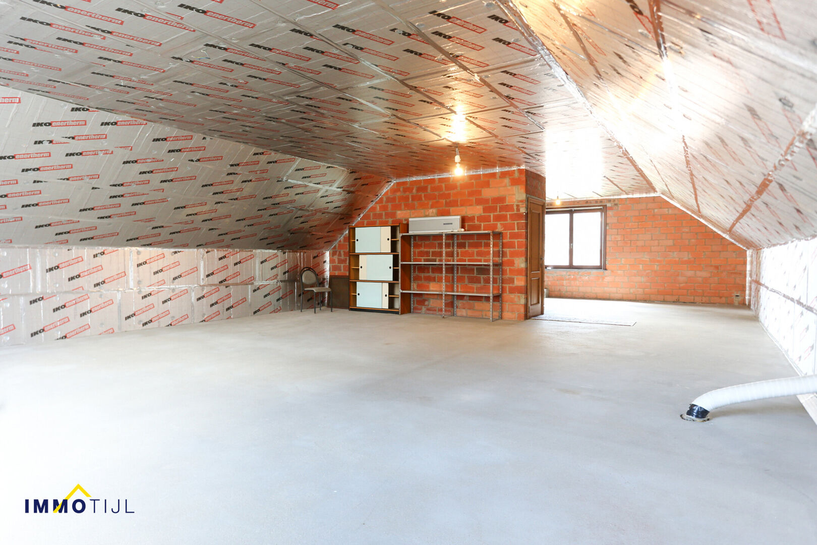 Op het verdiep bevindt zich een ruime geïsoleerde zolder van maar liefst 100m², deze biedt tal van uitbreidingsmogelijkheden – geschikt voor meerdere slaap- of hobbykamer(s).