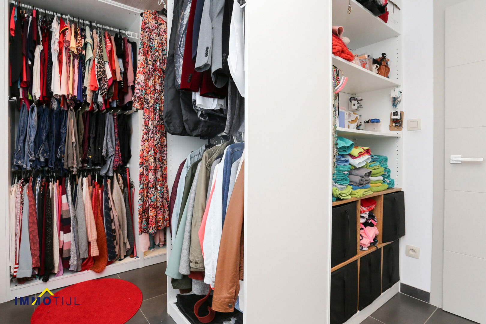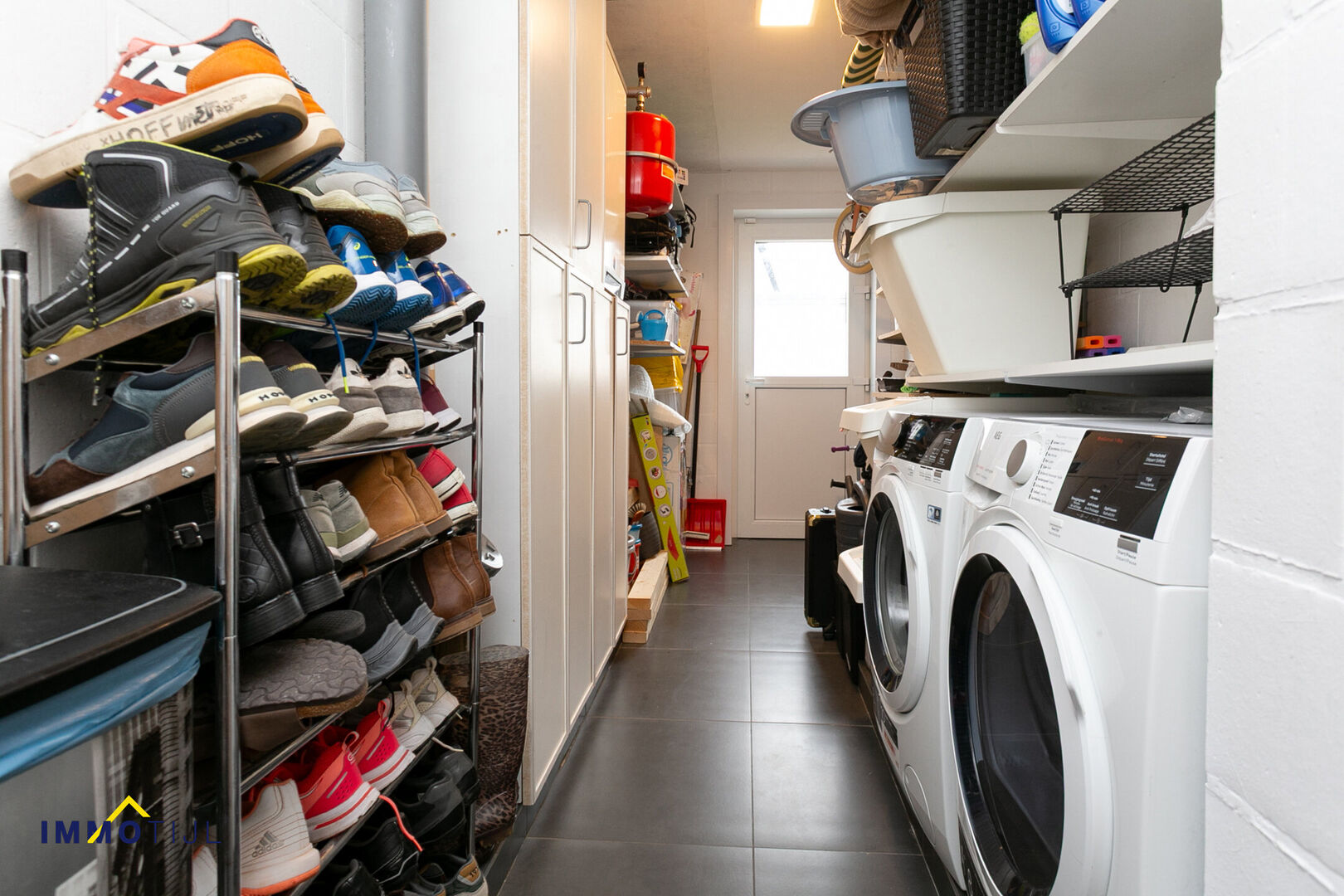 Indeling: inkomhal, apart gastentoilet, grote lichtrijke leefruimte met open keuken, een wasruimte en extra berging. Drie slaapkamers waarvan 1 gebruikt wordt als dressing, een toilet en de fraaie badkamer bevinden zich op het verdiep.