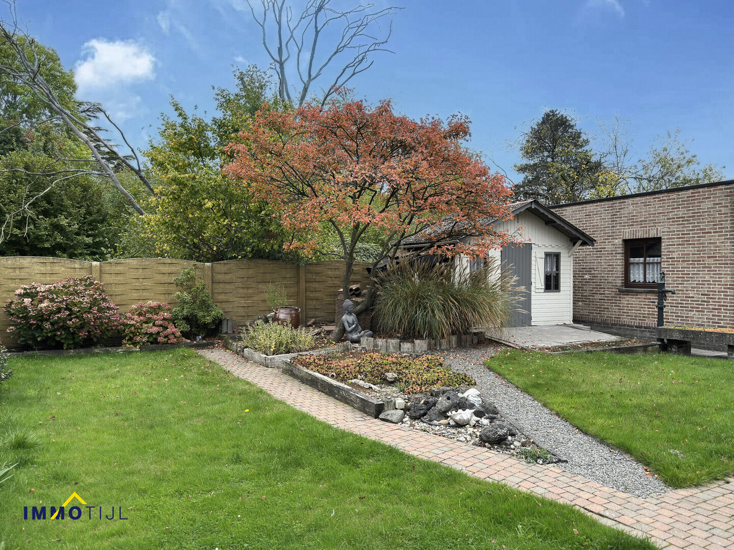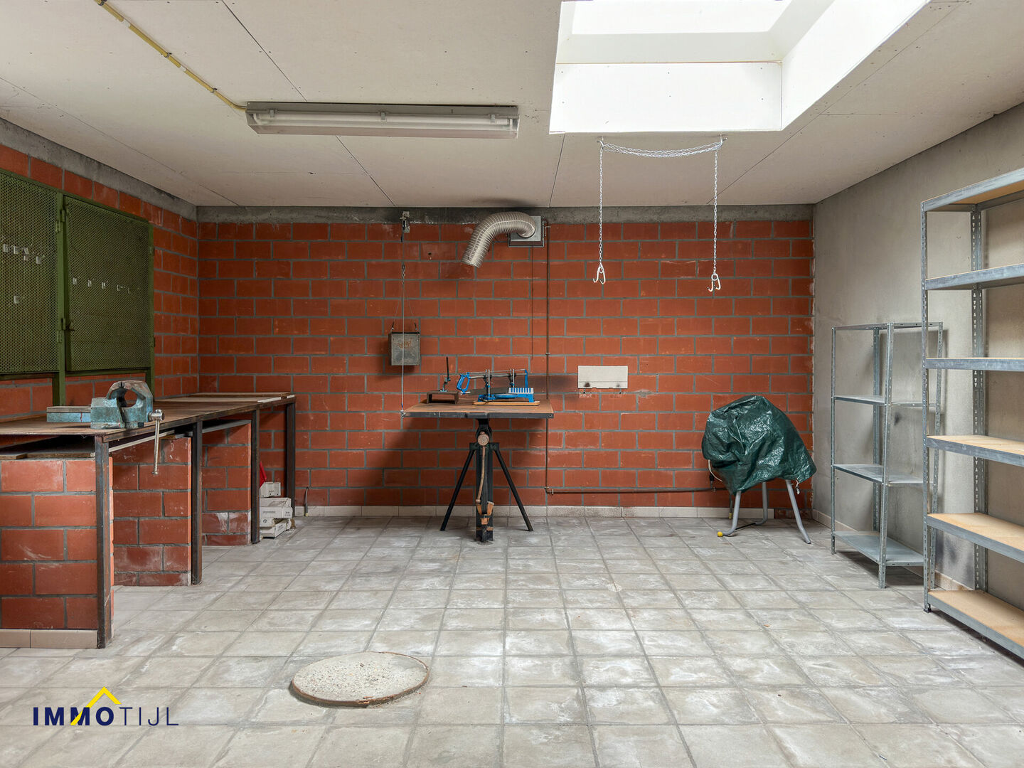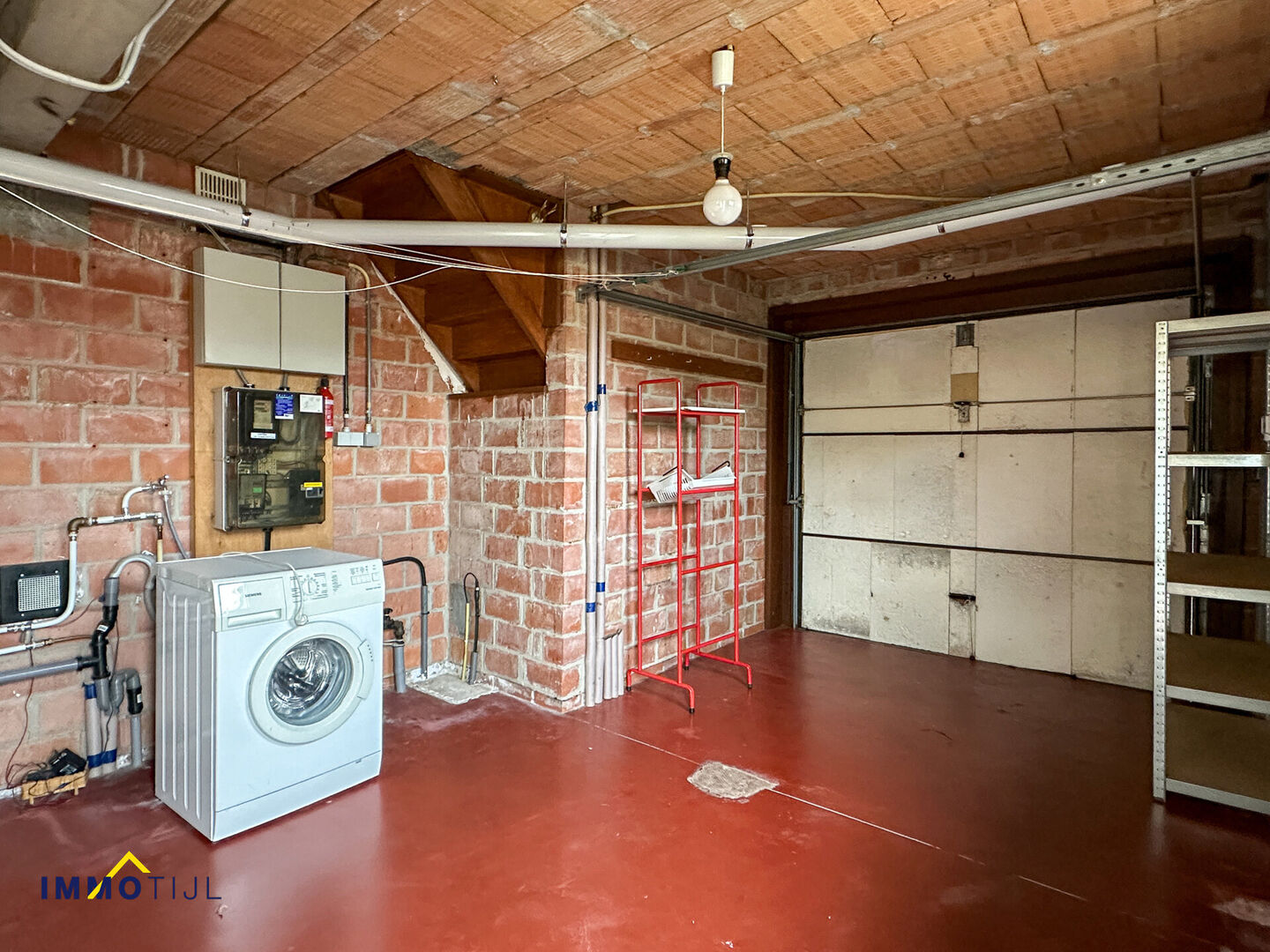Langs de woning is bijkomende parkeergelegenheid voorzien. Daarnaast is er nog een aparte garage met extra bergruimte, ideaal als werkplaats of atelier. Achteraan ligt een zonnige, mooi aangelegde tuin met terras en tuinberging, waar het aangenaam vertoeven is. De tuin is bovendien toegankelijk via een zijpoort!