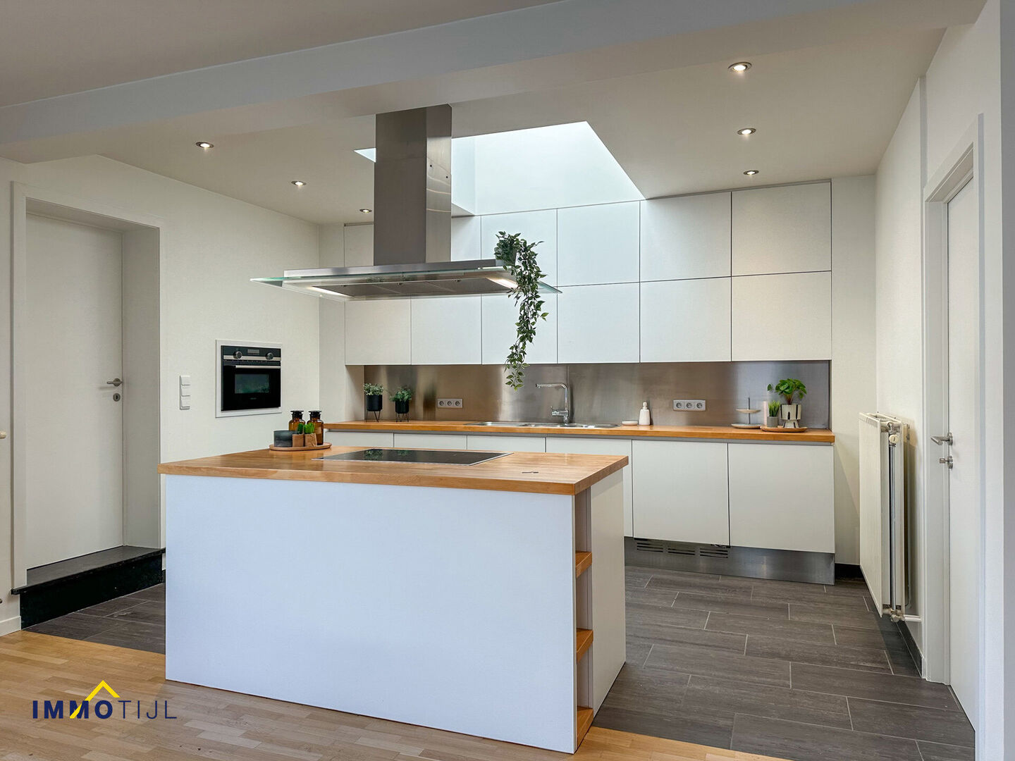 Aansluitend vindt u de volledig geïnstalleerde open keuken met eiland, voorzien van alle comfort.
