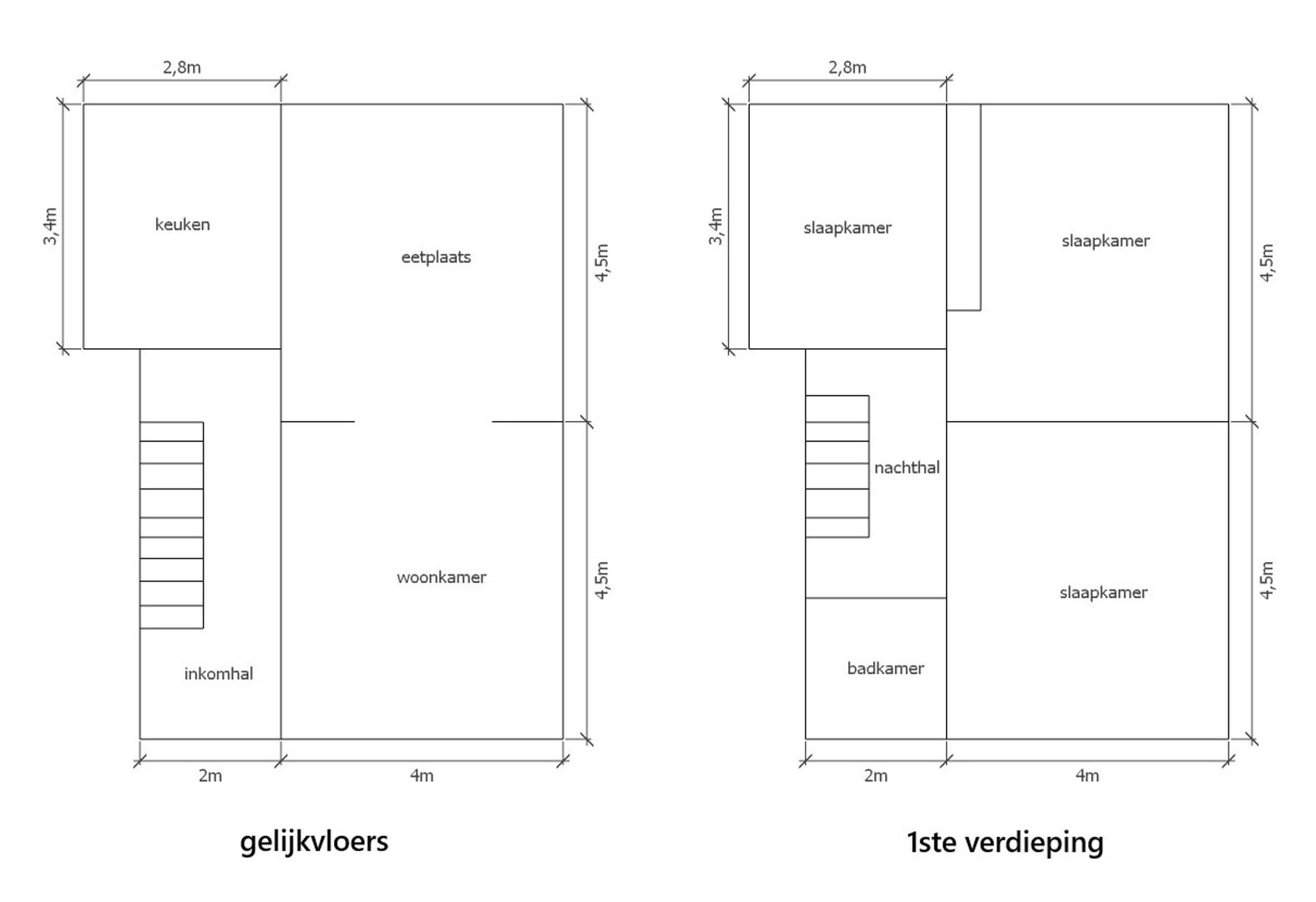 Op de eerste verdieping bevinden zich drie slaapkamers en een badkamer, uitgerust met bad, lavabomeubel en toilet. Daarnaast biedt de zolder, bereikbaar via een vaste trap, extra opbergruimte én uitbreidingsmogelijkheden.