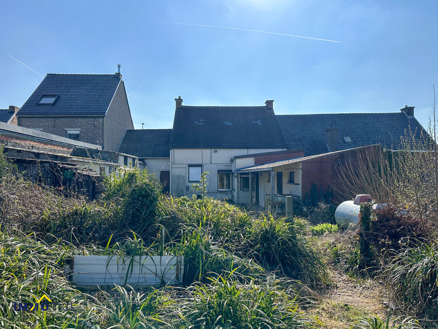 Op de eerste verdieping zijn er twee ruime slaapkamers, met de mogelijkheid om een derde slaapkamer te creëren. Aangrenzend aan de woning bevindt zich een ruime schuur/garage met een extra verdiep, wat tal van mogelijkheden biedt als opslag, werkruimte of hobbyruimte. Verder zijn er nog extra bijgebouwen achter de schuur, ideaal voor bijkomende stockage. De diepe, zonnige tuin maakt het geheel compleet.