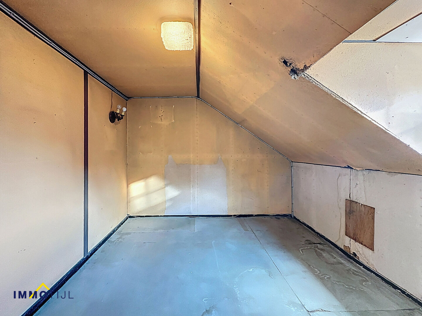 Deze compleet te renoveren woning biedt op het gelijkvloers een lichtrijke leefruimte, eetkamer, ruimte voor een keuken, en een badkamer uitgerust met douche, lavabo en toilet. Op de eerste verdieping bevinden zich drie comfortabele slaapkamers.