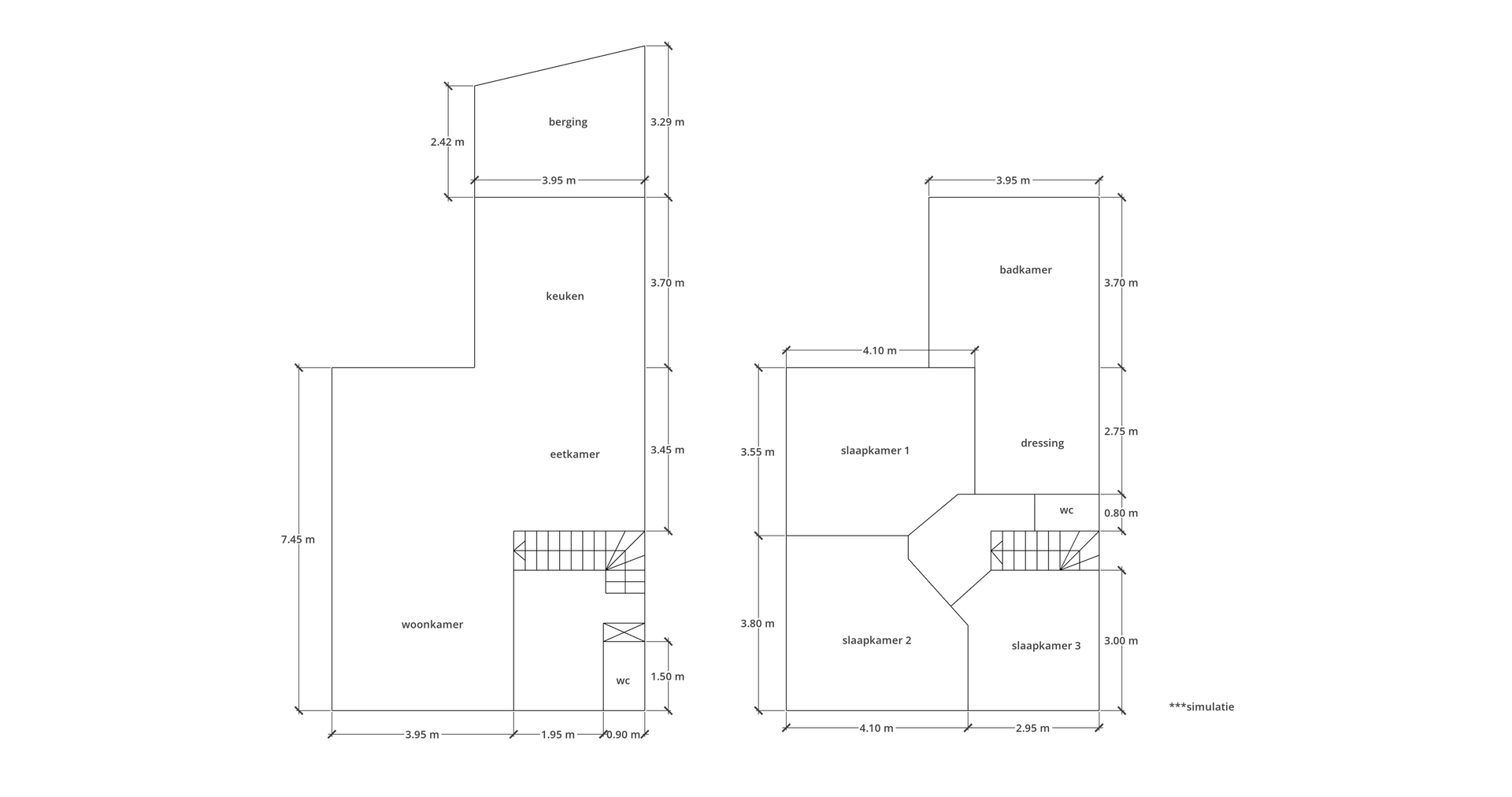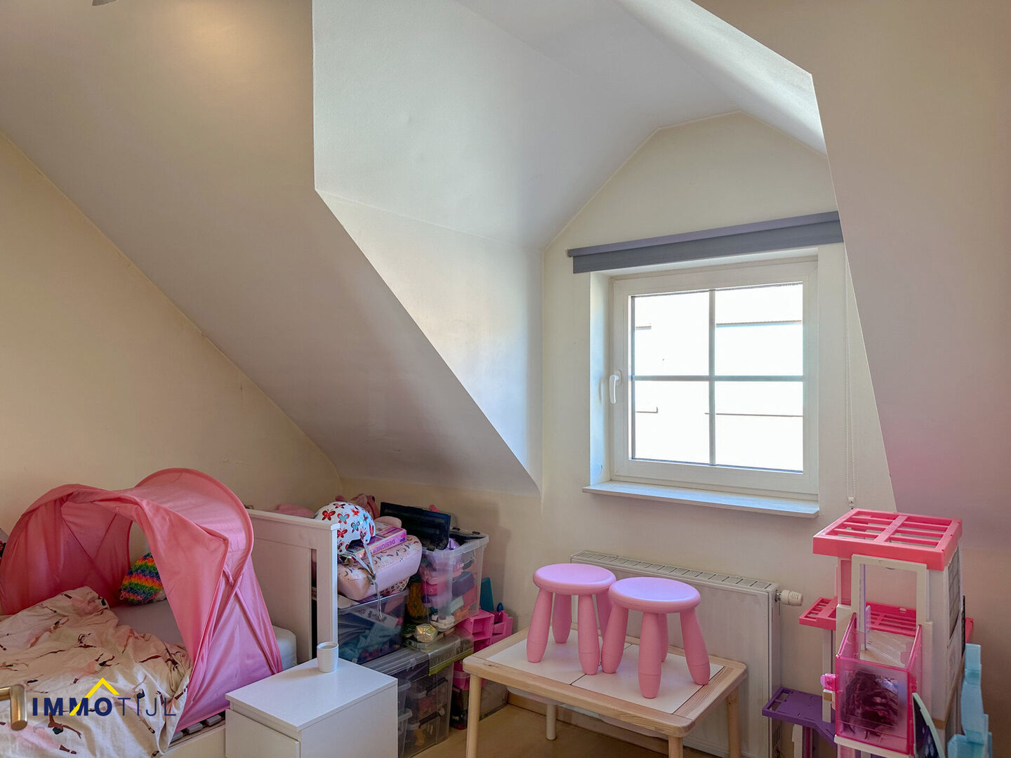 Op de eerste verdieping bevinden zich drie slaapkamers, een dressing en een ruime badkamer uitgerust met ligbad, douche en een dubbel lavabomeubel. Verder is er nog een apart toilet aanwezig en een zolderruimte (enkel goed voor stockage).