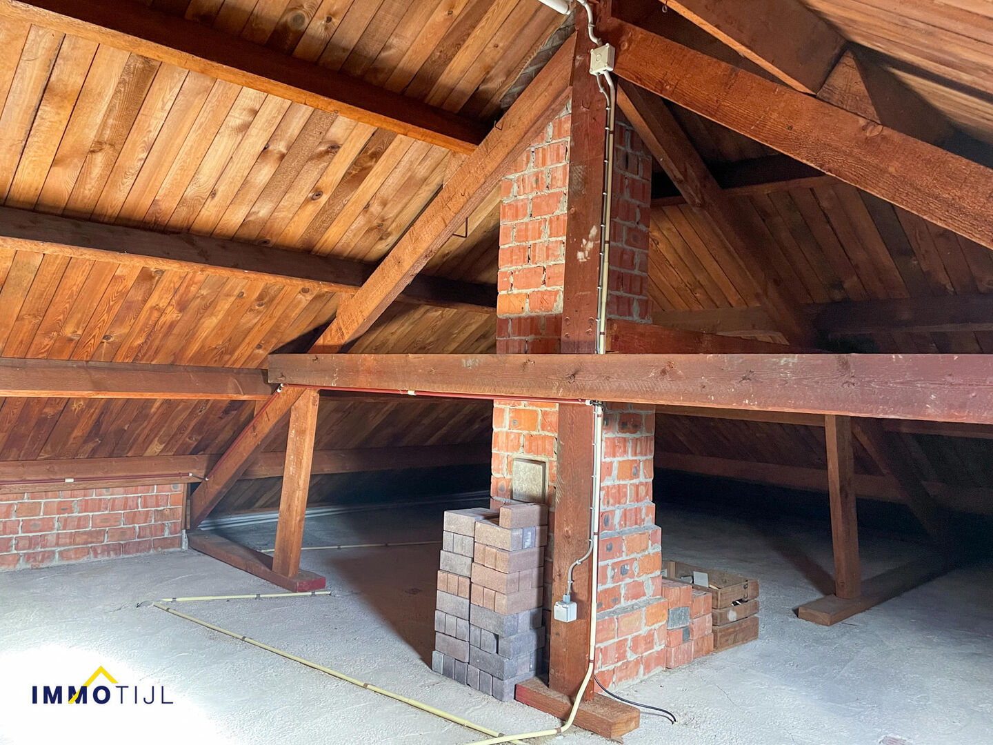 Op de eerste verdieping bevinden zich twee grote slaapkamers, een nachthal en een badkamer. Via een valtrap bereikt u de zolderverdieping, die dienst kan doen als extra bergruimte of, mits renovatie, als derde slaapkamer.