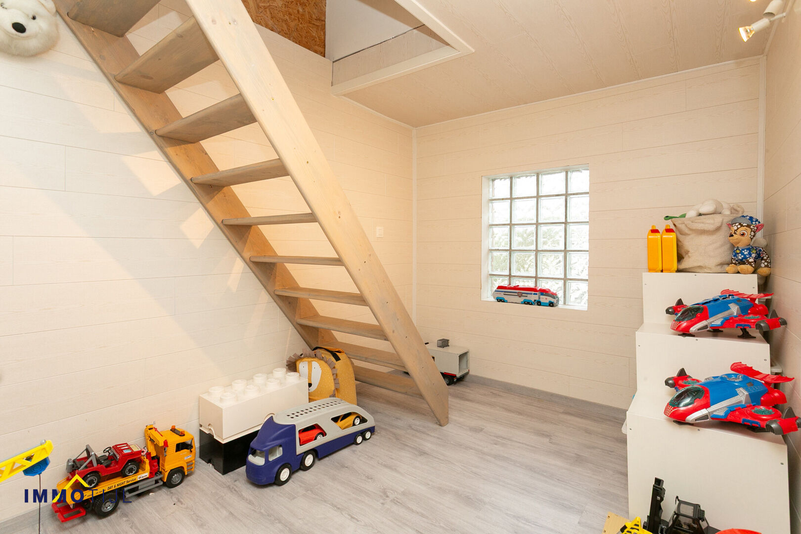 De tussenverdieping is momenteel ingericht als speelruimte voor de kinderen, maar leent zich ook uitstekend als bureau of multifunctionele ruimte. Op de bovenverdieping bevinden zich nog drie volwaardige slaapkamers, wat het totaal op vier slaapkamers brengt, aangevuld met een gezellig zitgedeelte dat kan dienen als leeshoek of ontspanningsruimte.