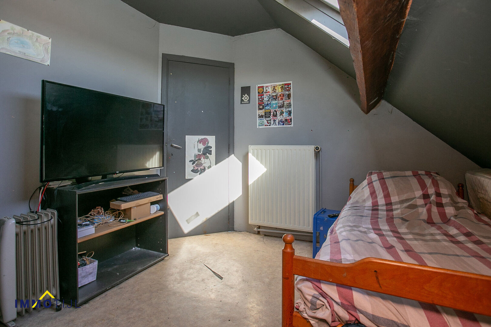 Indeling gelijkvloers: inkomhal, bureau of kamer vooraan, leefruimte, wc en berging met keuken achteraan. Eerste verdiep: een grote kamer een te moderniseren badkamer. Tweede verdiep: 2 kamers. Tevens kelder aanwezig.
