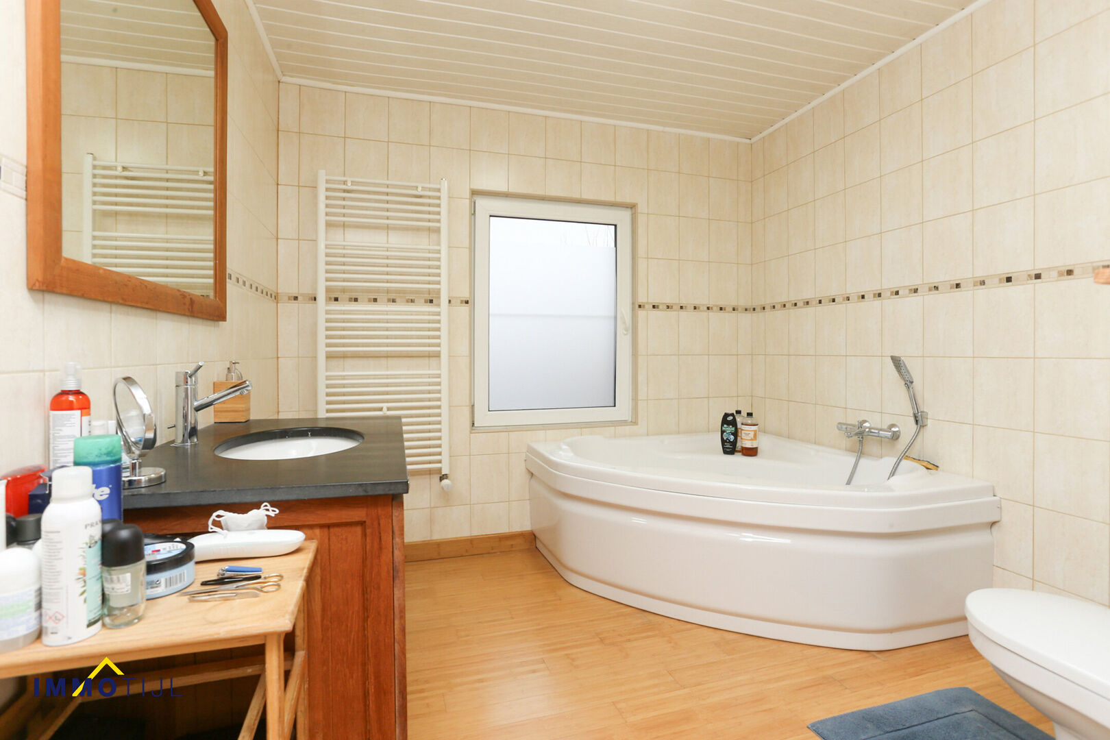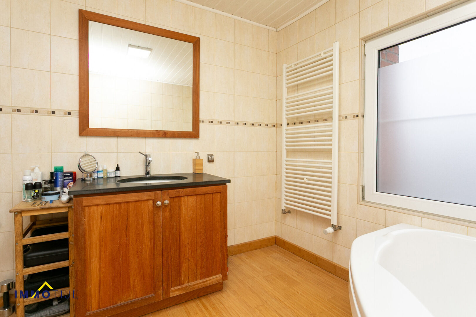 De woning beschikt over een praktische en comfortabele indeling met drie volwaardige slaapkamers en een volledig afgewerkte zolderverdieping die kan dienen als vierde slaapkamer, bureau of polyvalente ruimte. Dankzij de twee badkamers geniet u van extra comfort voor het hele gezin. In de leefruimte zorgt een vrijstaande speksteenkachel voor een warme en gezellige sfeer.